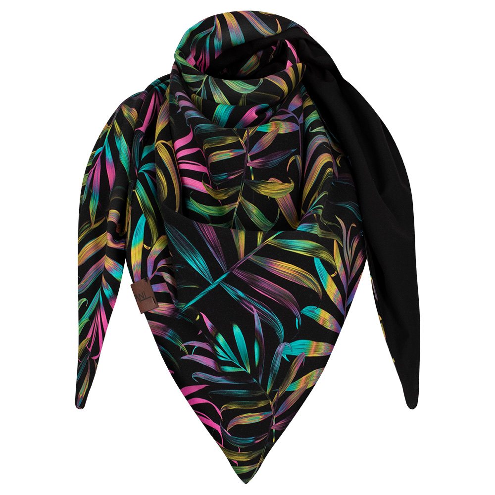 Chusta cienka dwustronna z bawełny, palmy-czarny