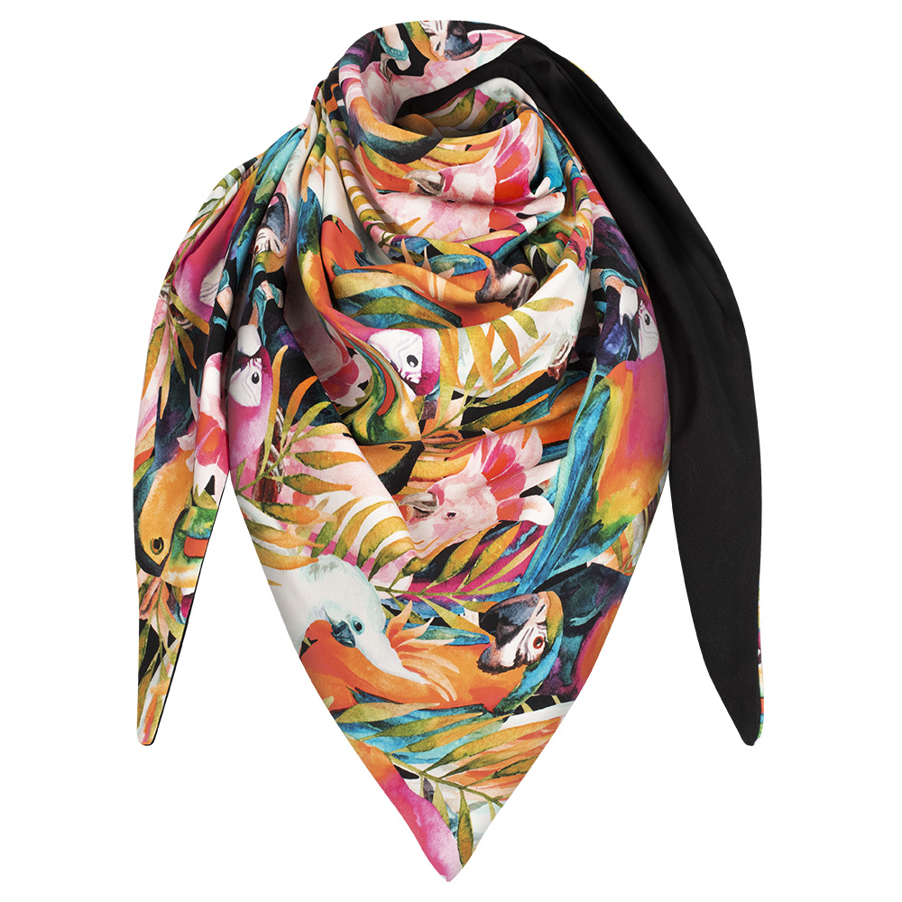 Chusta cienka dwustronna z bawełny papugi-czarny