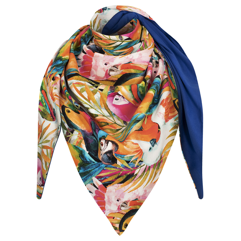 Chusta cienka dwustronna z bawełny papugi + kobalt