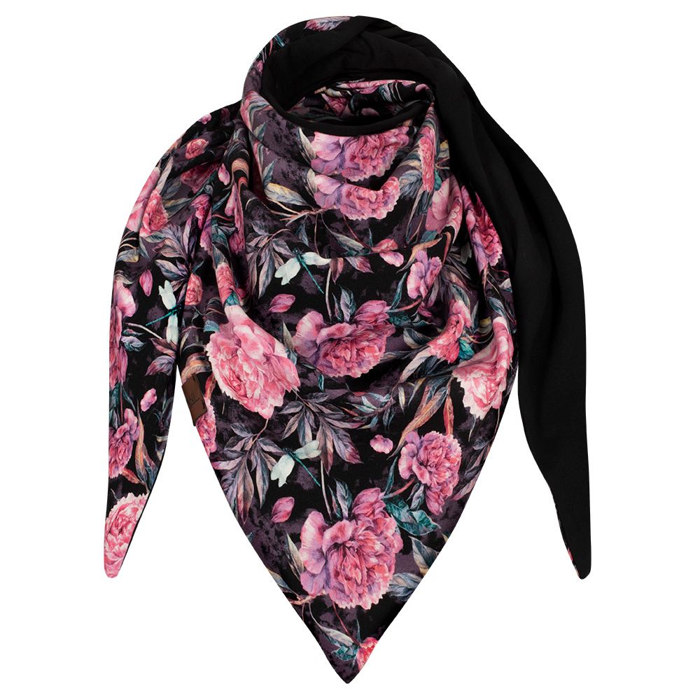 Chusta cienka dwustronna z bawełny, różowe kwiaty-czarny