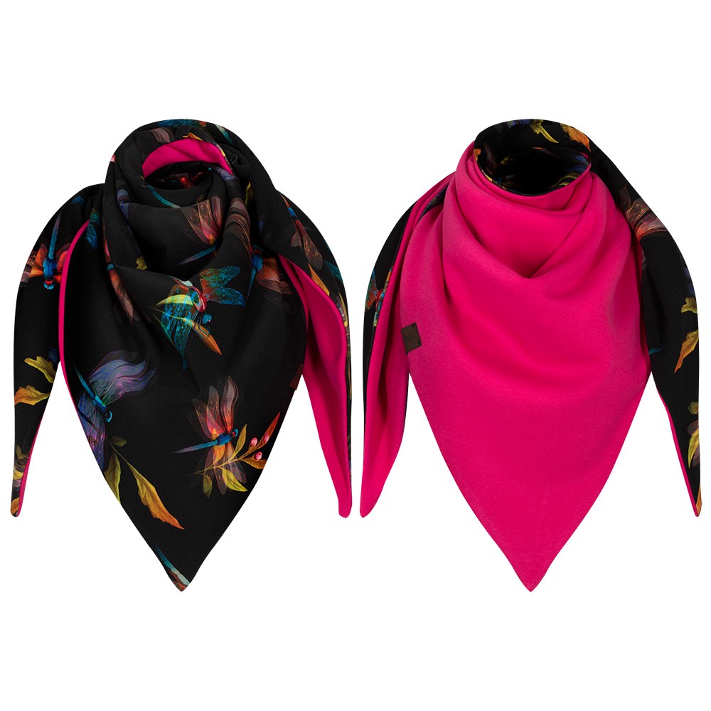 Chusta gruba dwustronna kolorowa, ważki-malina