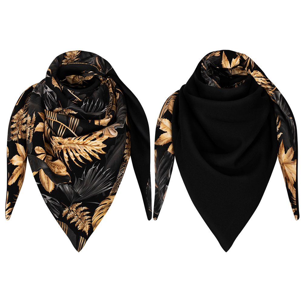 Chusta gruba dwustronna kolorowa, złote liście-czarny