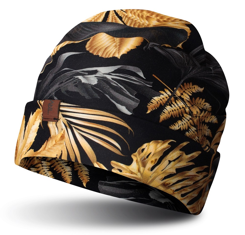 Czapka beanie, wywijana, złote liście