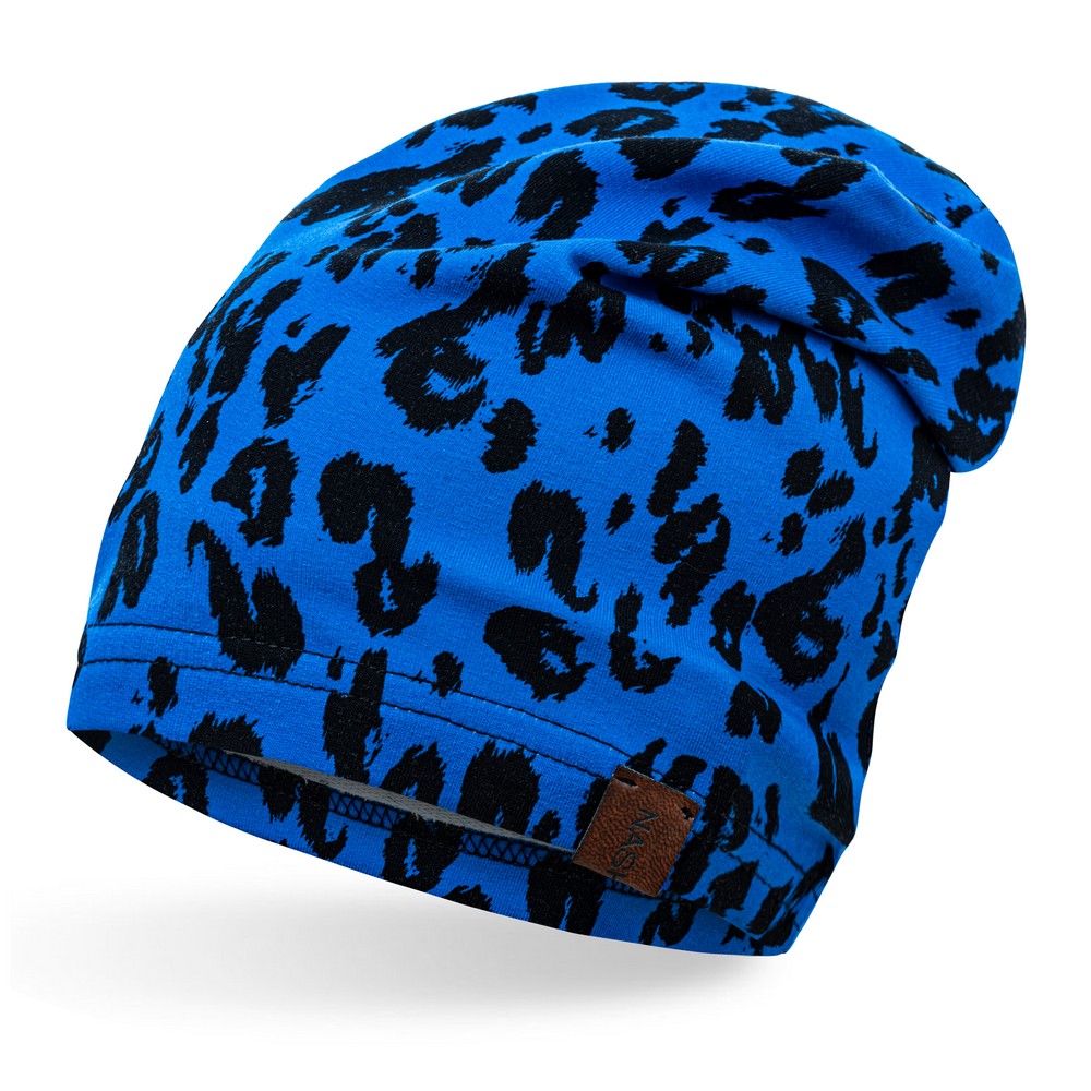 Czapka cienka bawełniana kobaltowa pantera