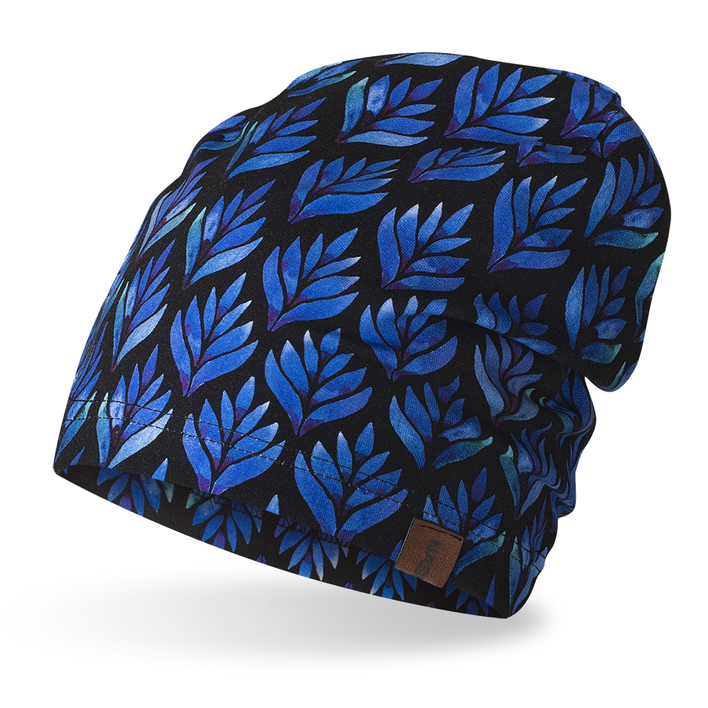 Czapka cienka bawełniana kobaltowe liście