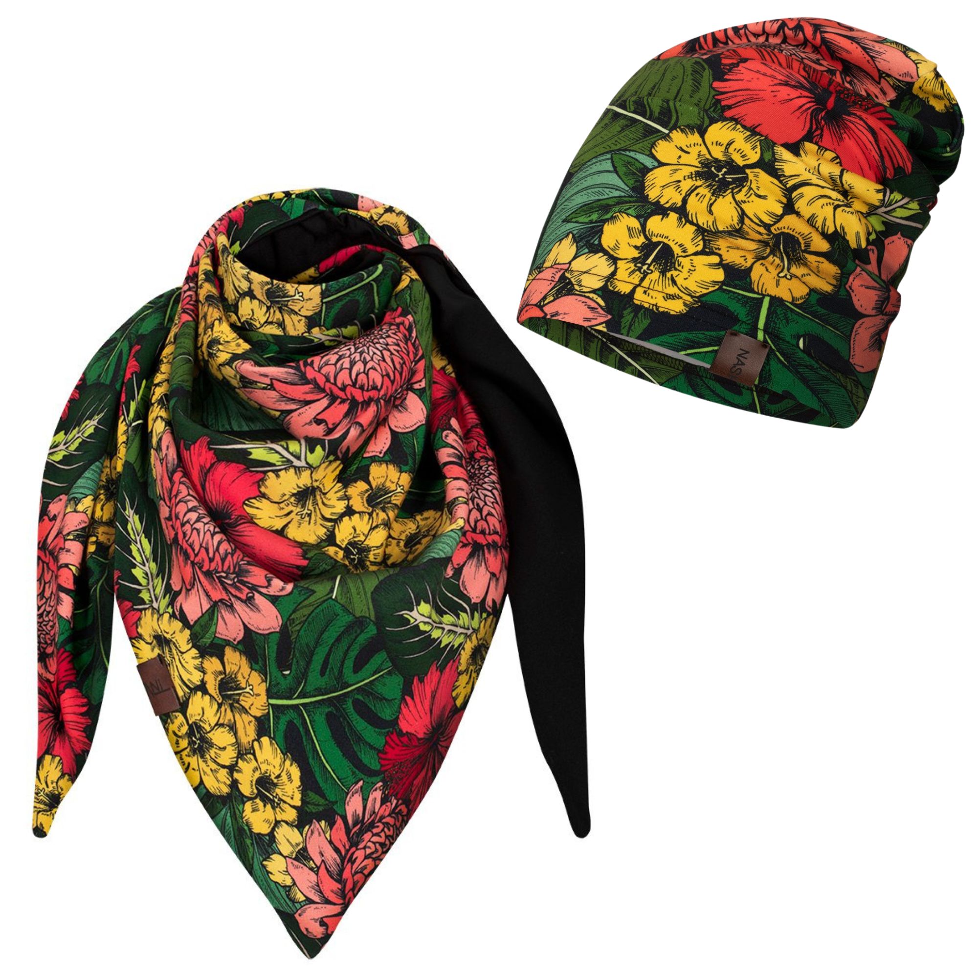 Komplet cienka czapka + chusta dalie-czarny