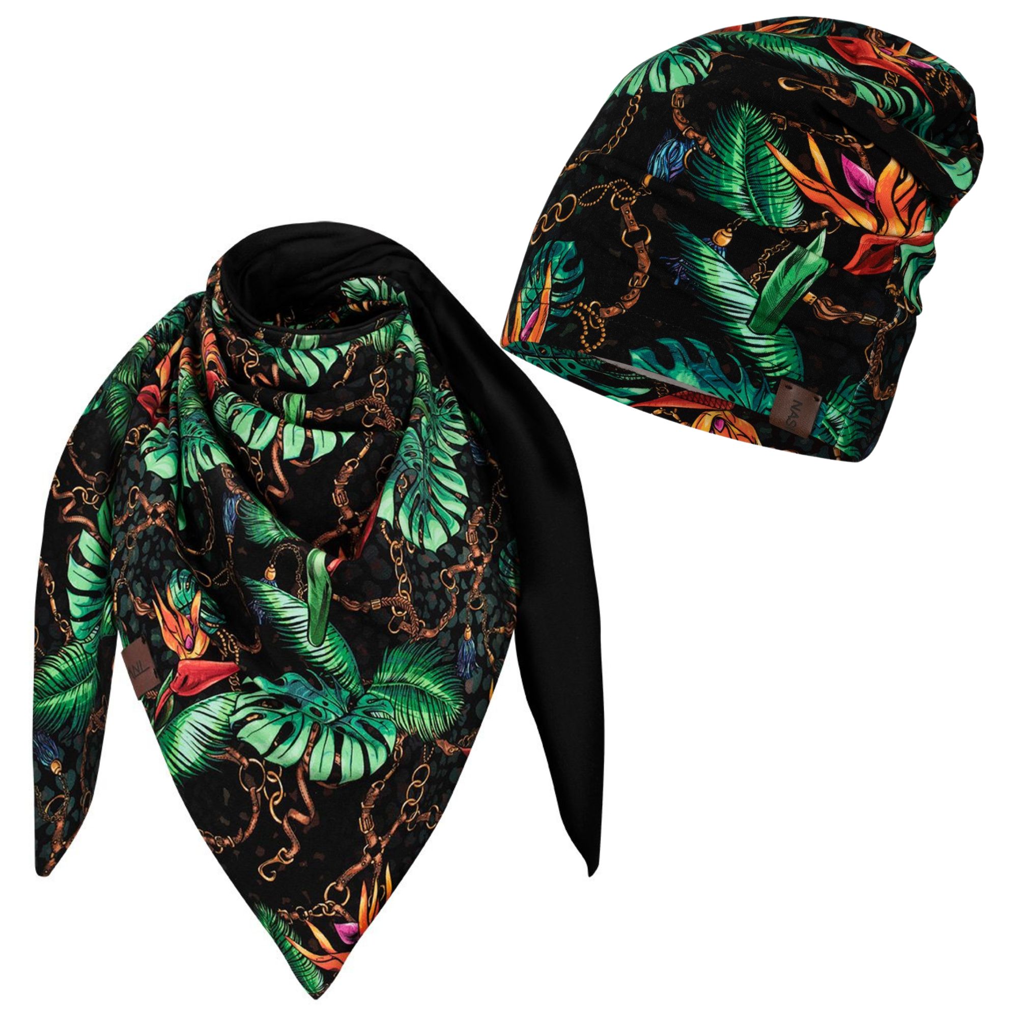 Komplet cienka czapka + chusta produkt polski łańcuchy-czarny