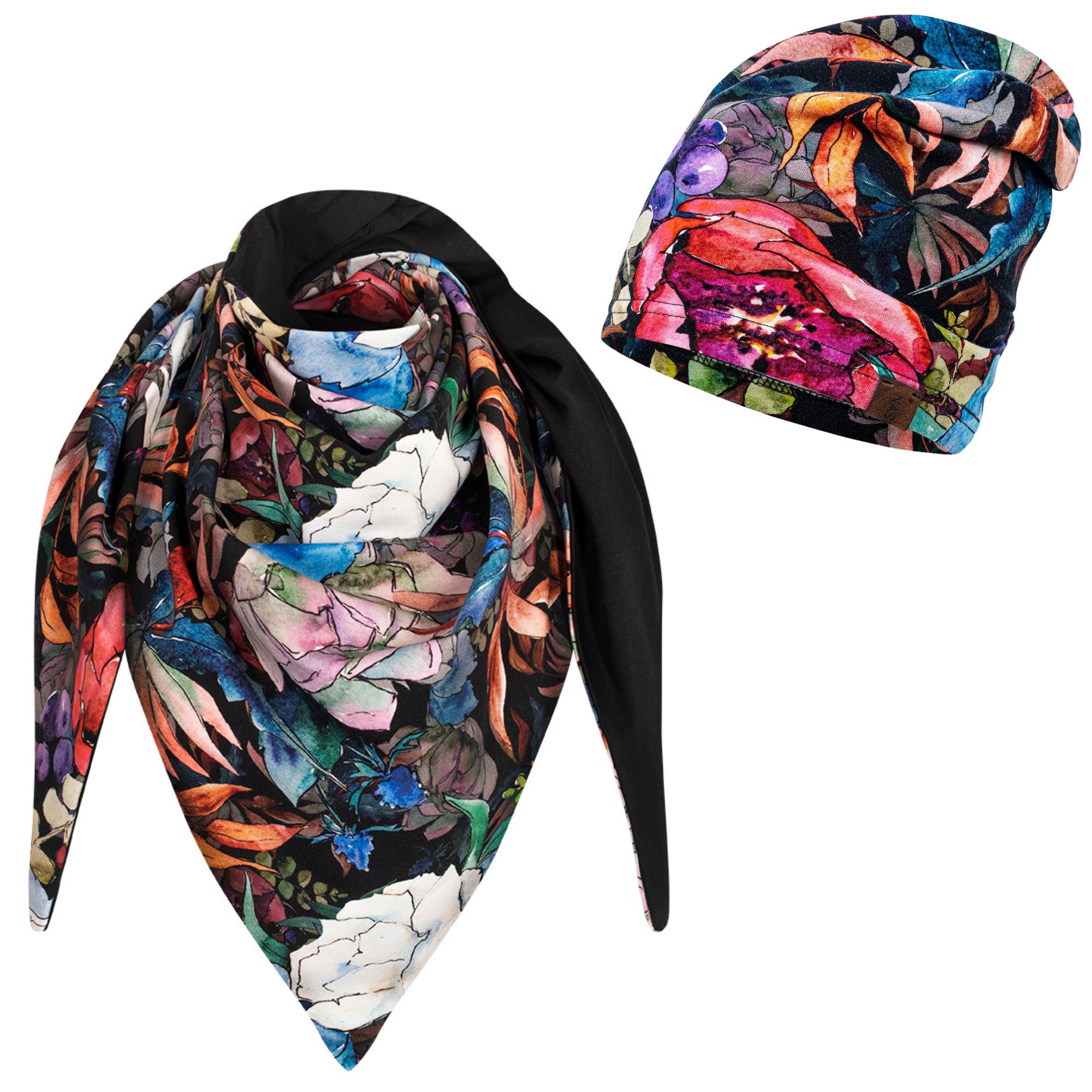 Komplet cienka czapka + chusta piwonie-czarny