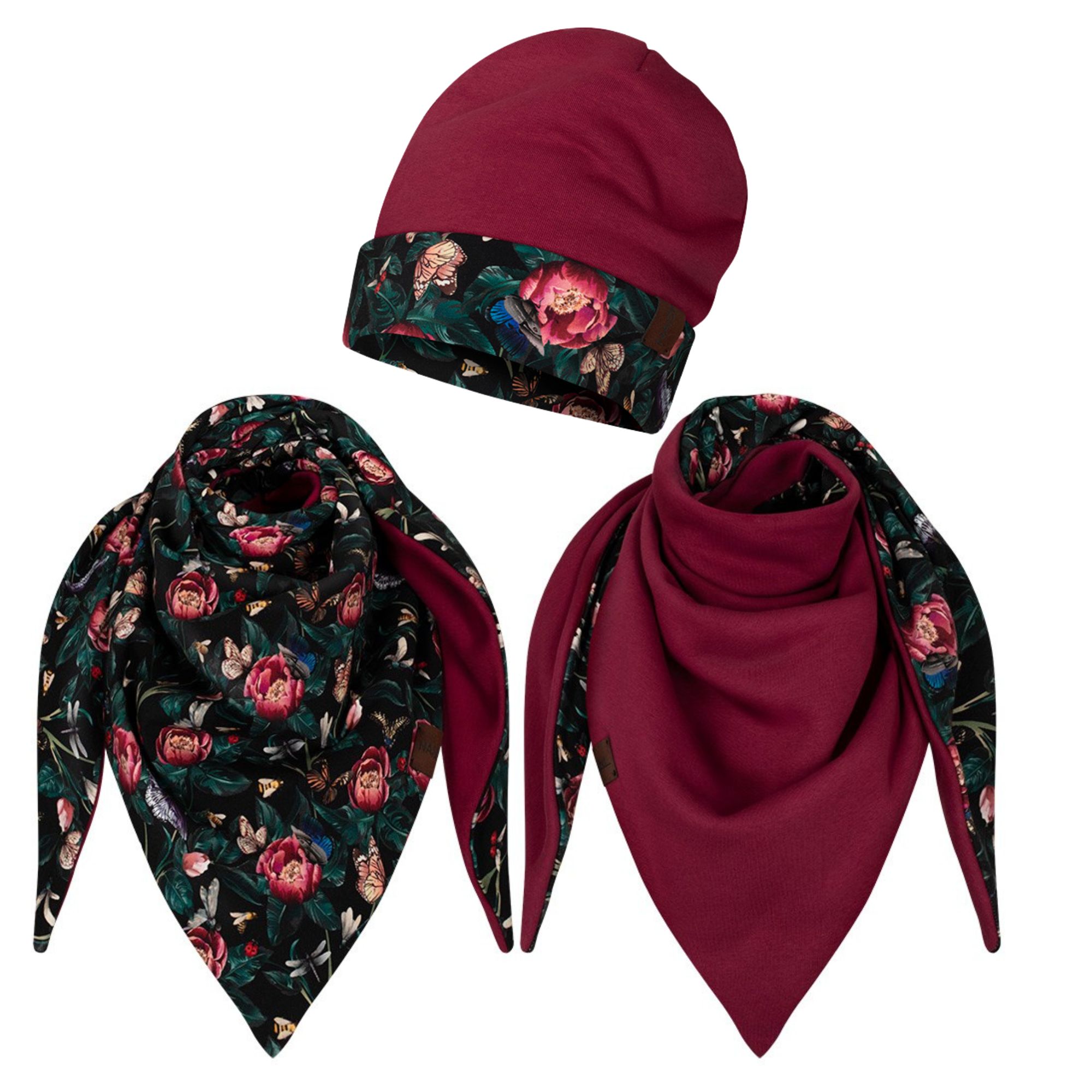 Komplet gruba chusta+czapka Francja-bordo