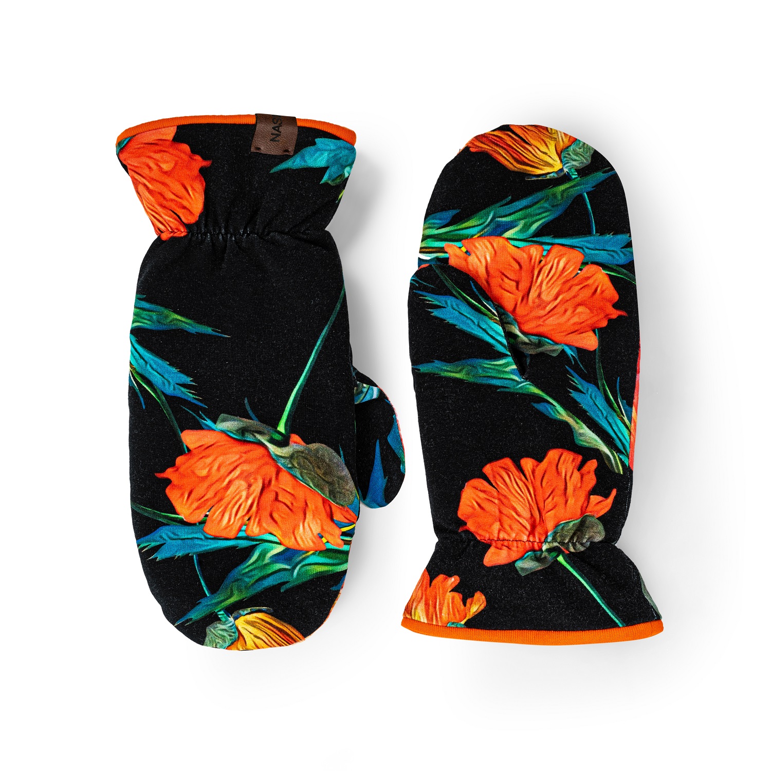 Rękawiczki miejskie jednopalczaste, maki+pomarańcz