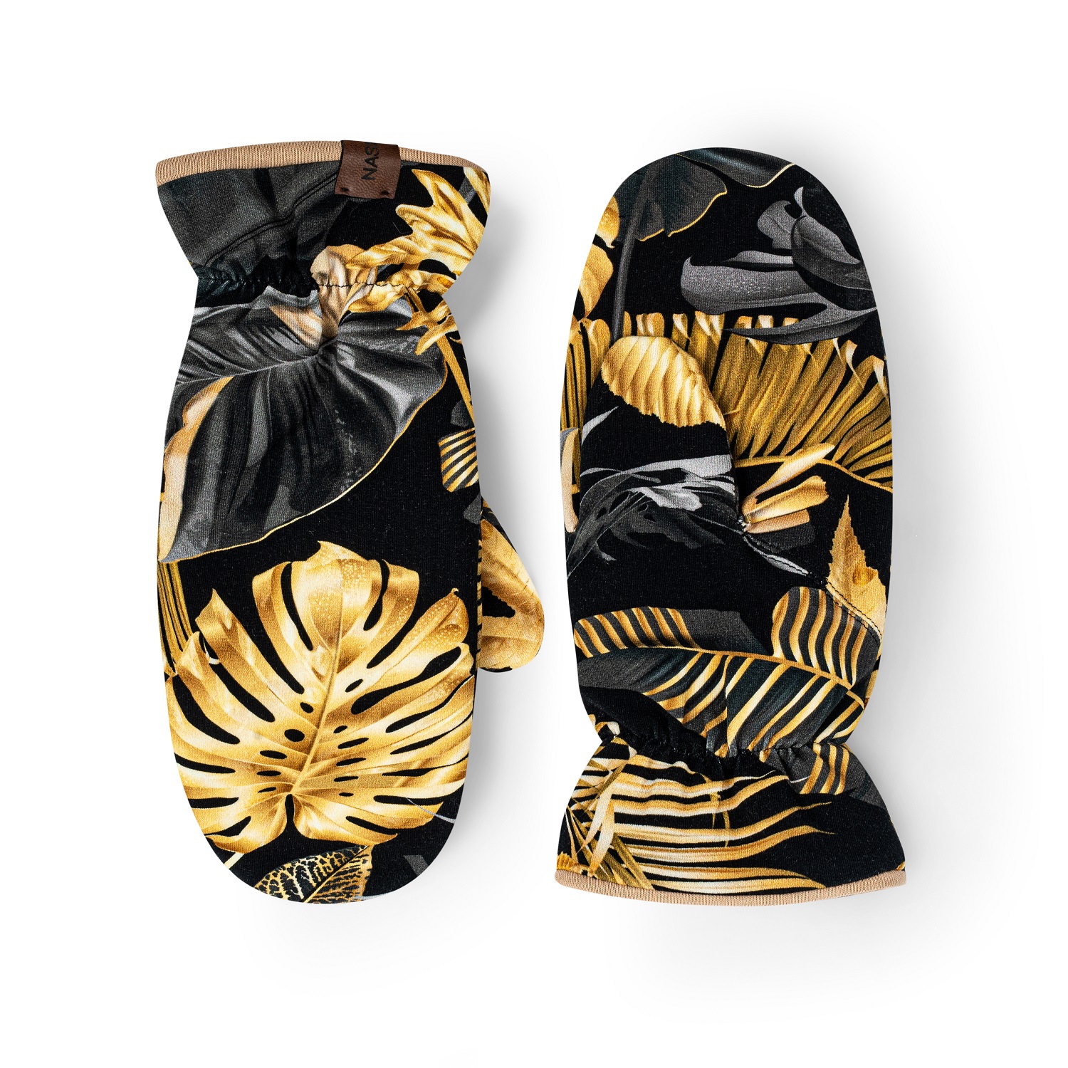 Rękawiczki miejskie jednopalczaste, złote liście+beż