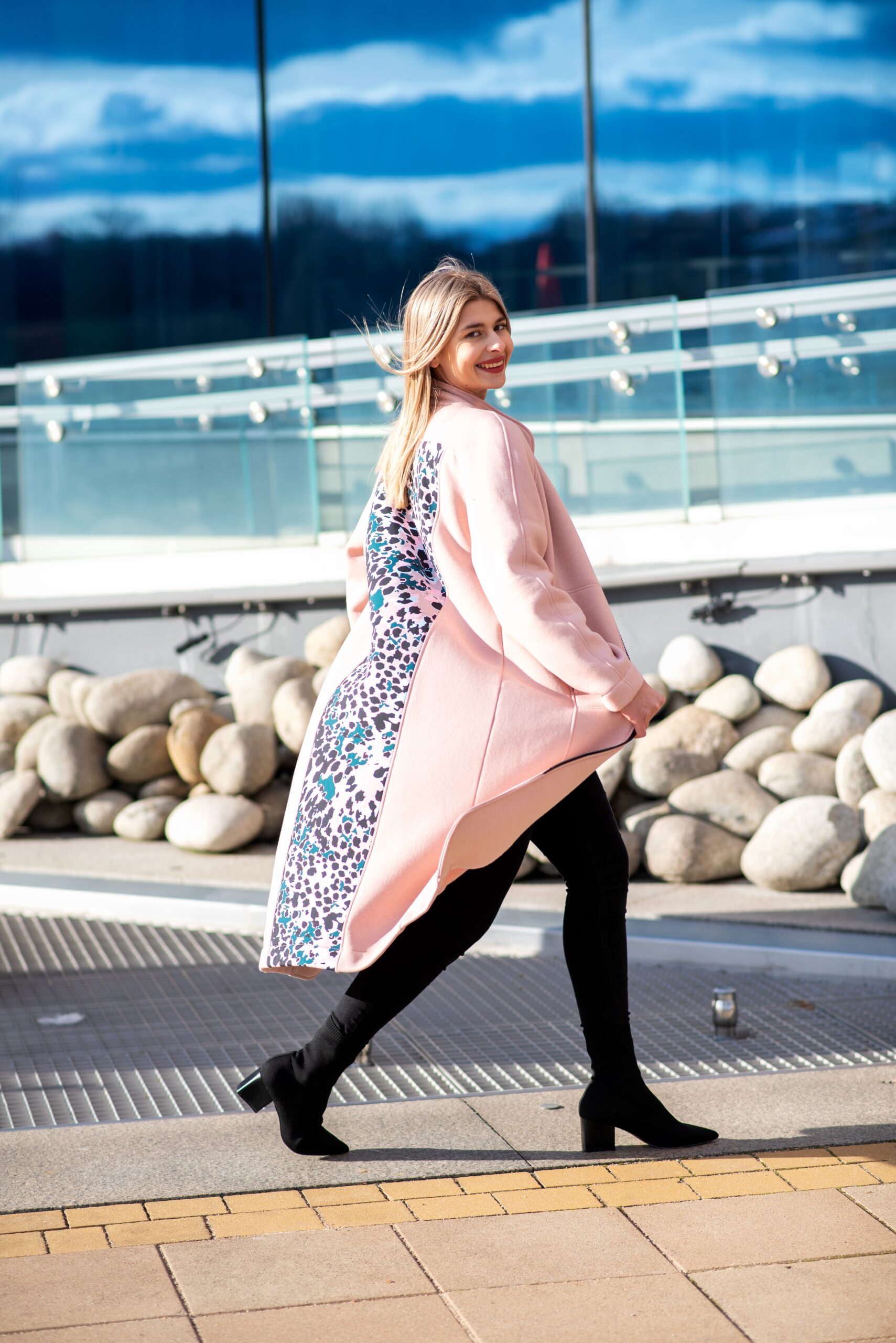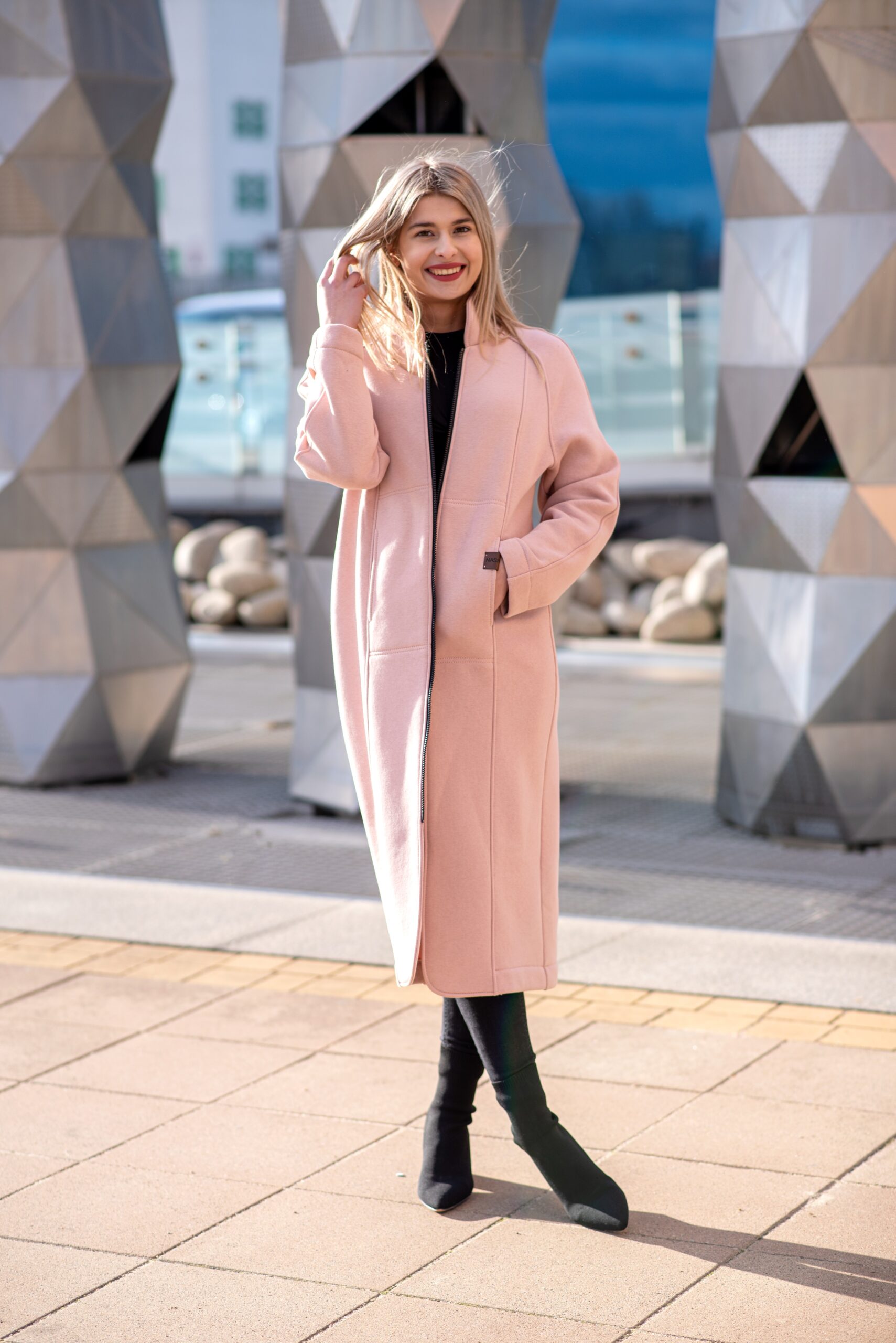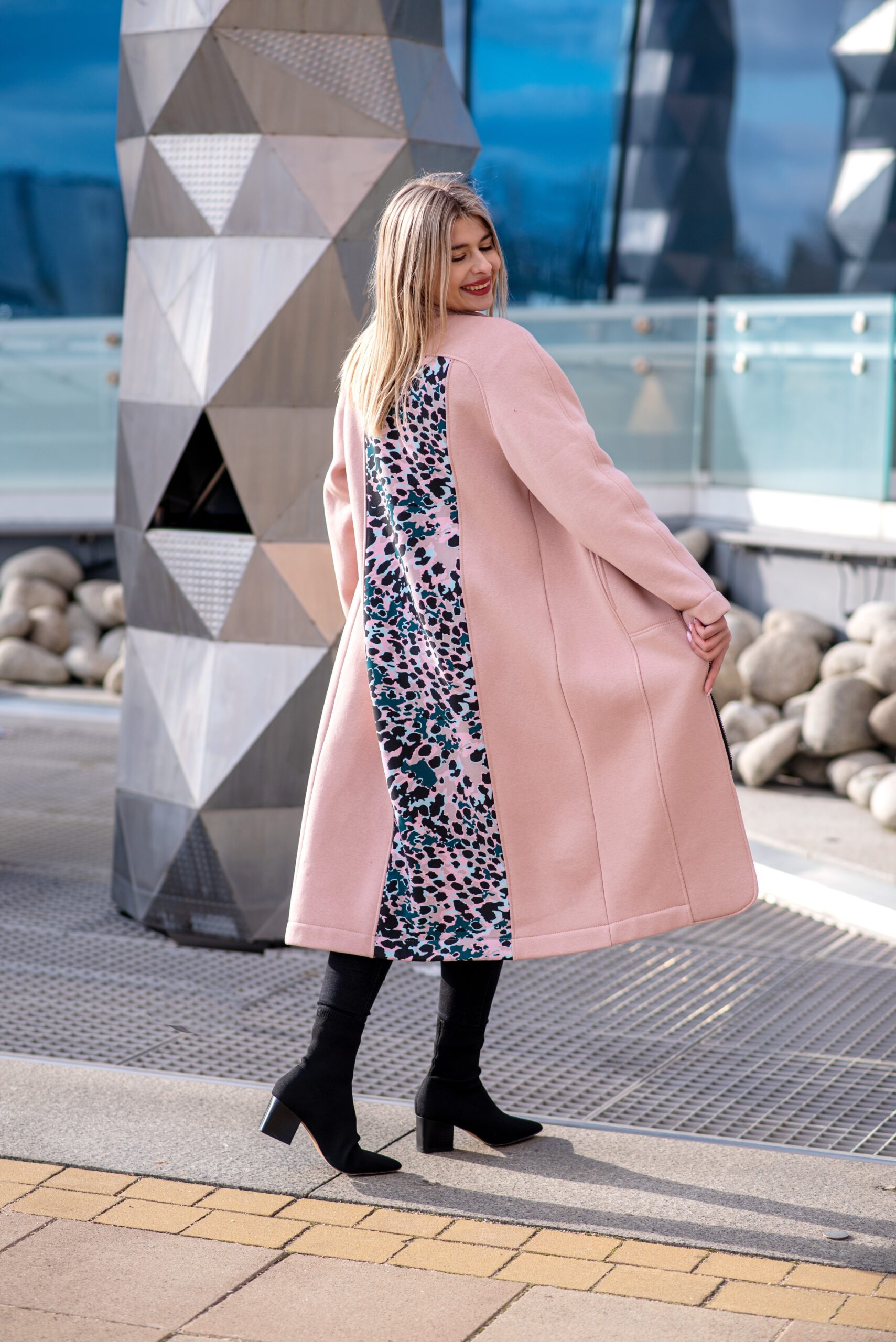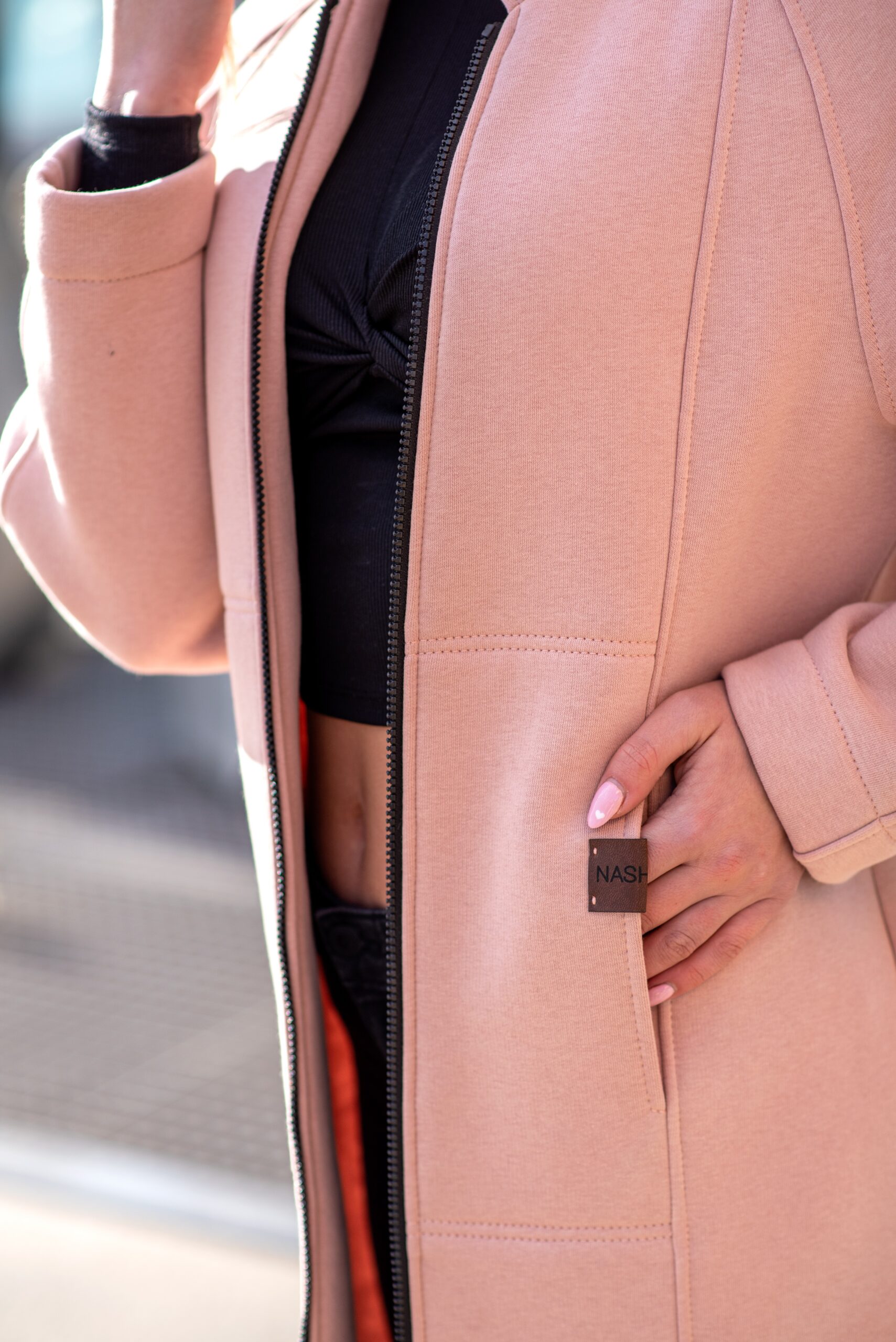 Długa dzianinowa bluza ze stójką pudrowy róż-różowa pantera