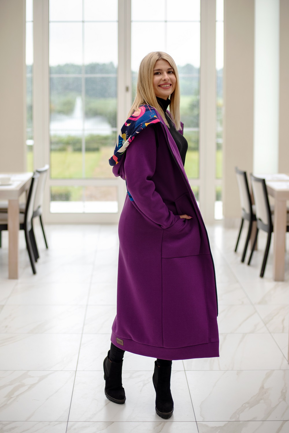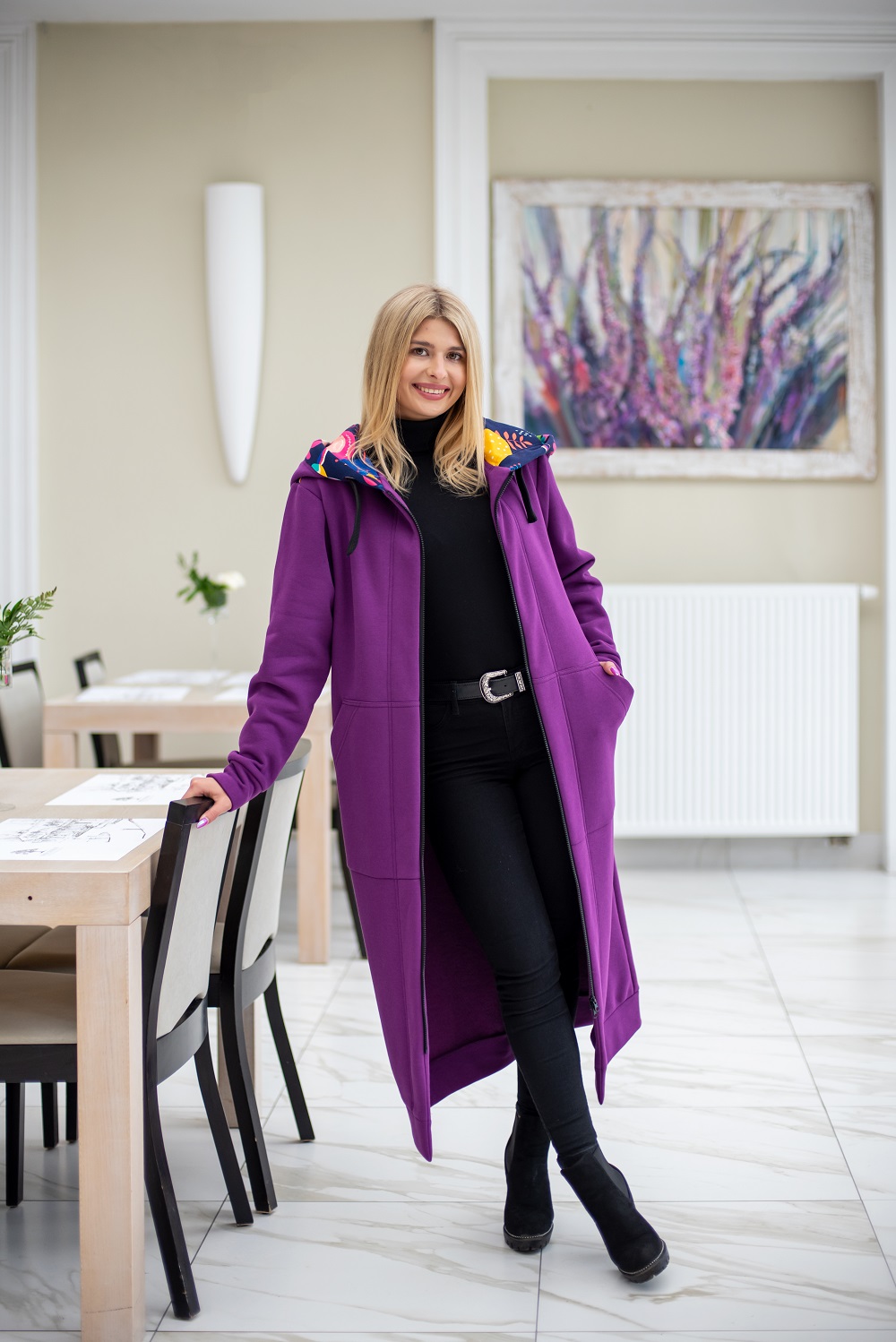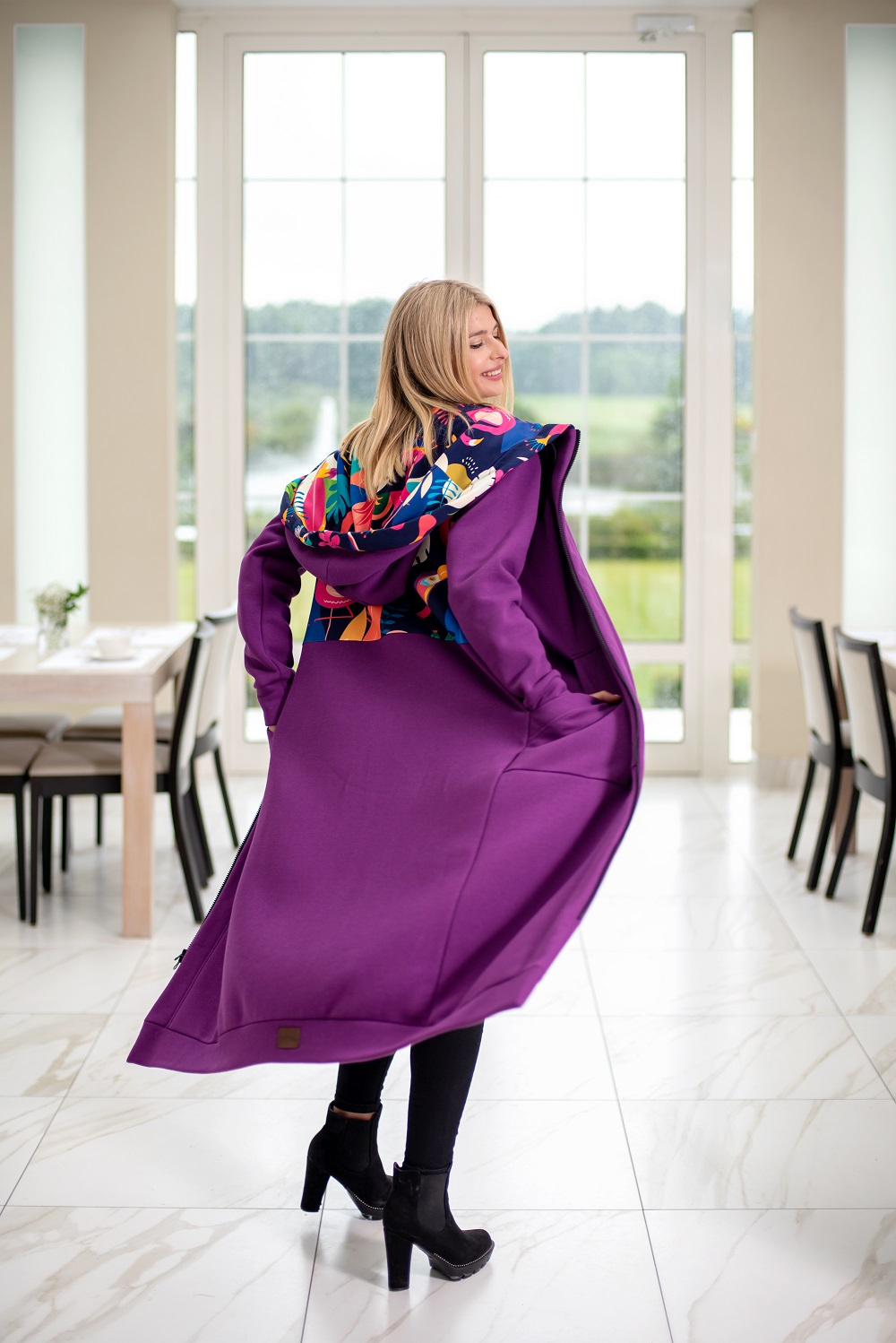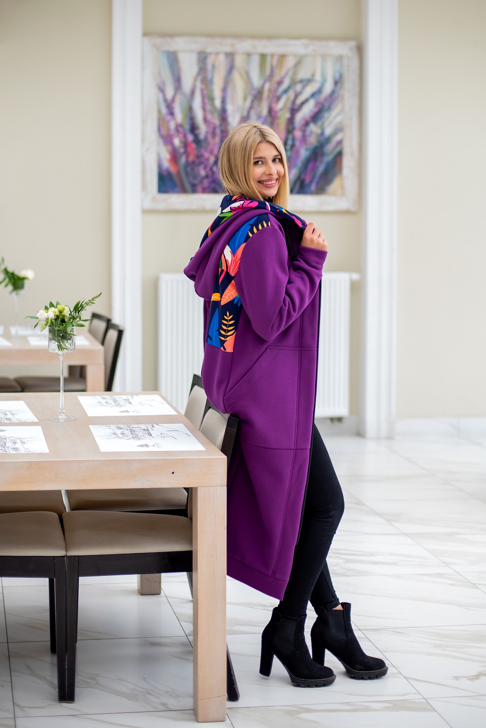 Mega długa bluza fiolet-kolibry