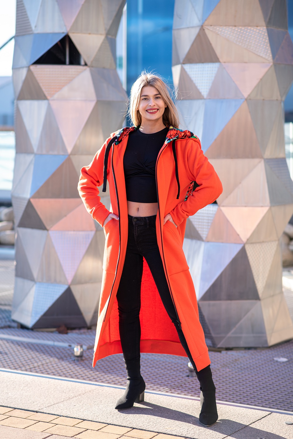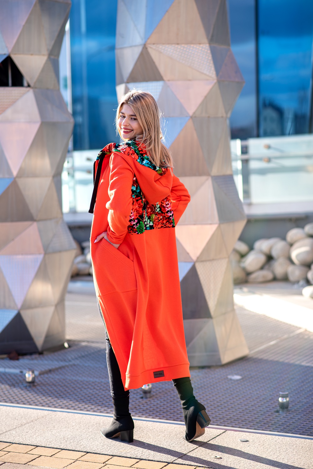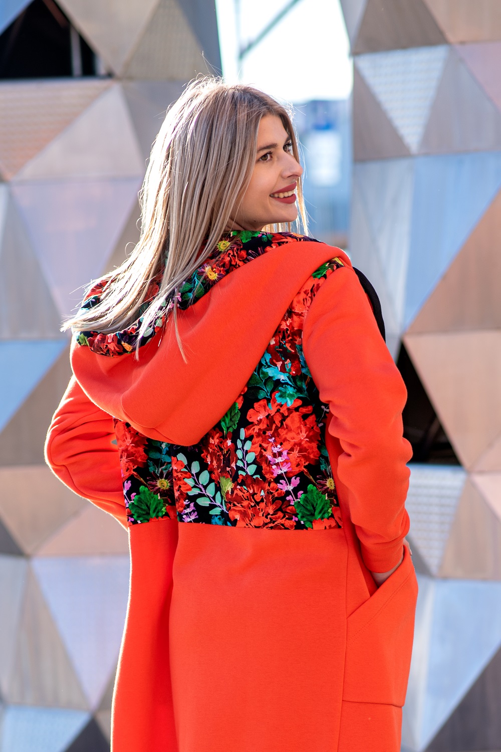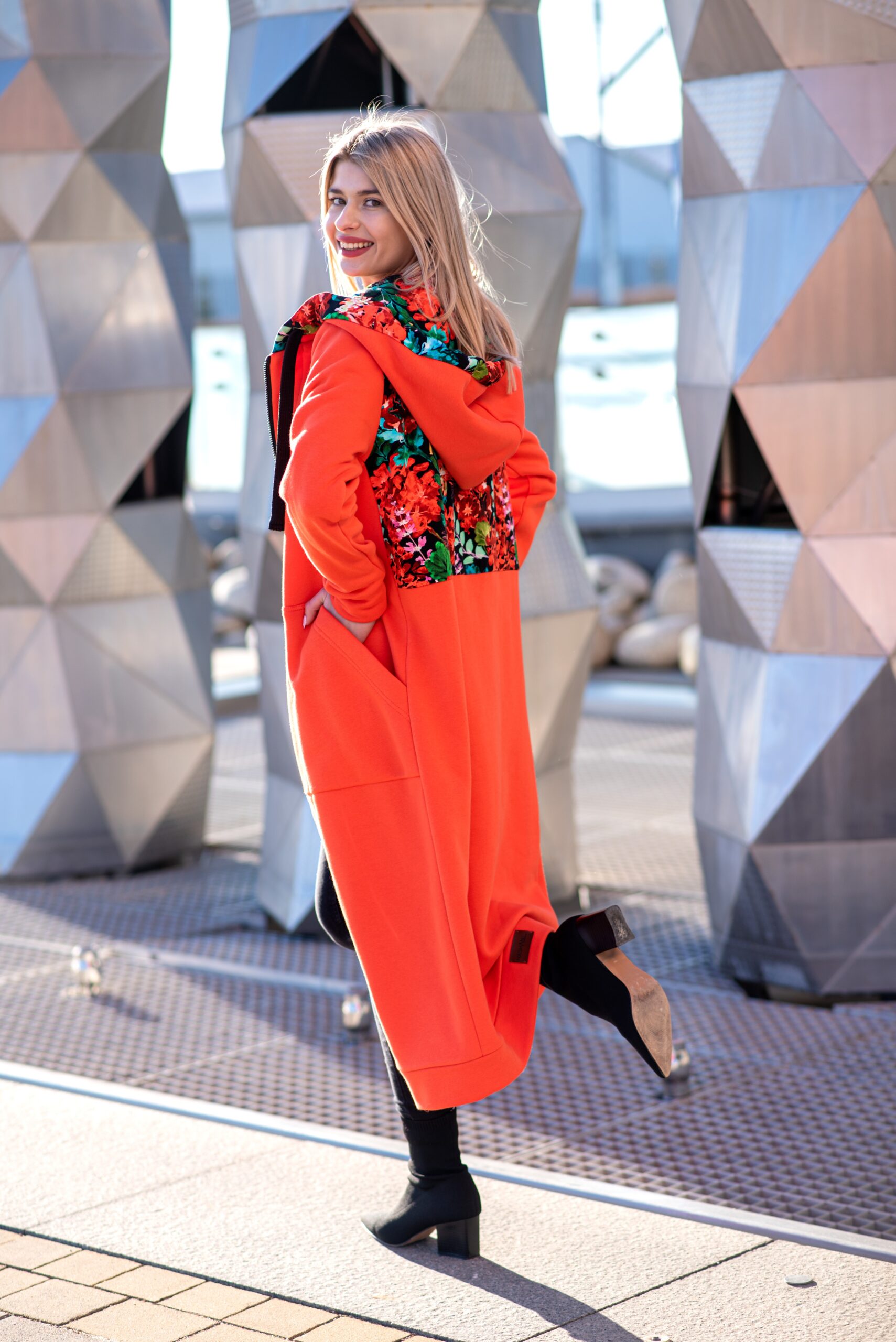 Mega długa bluza pomarańcz-czerwone kwiaty