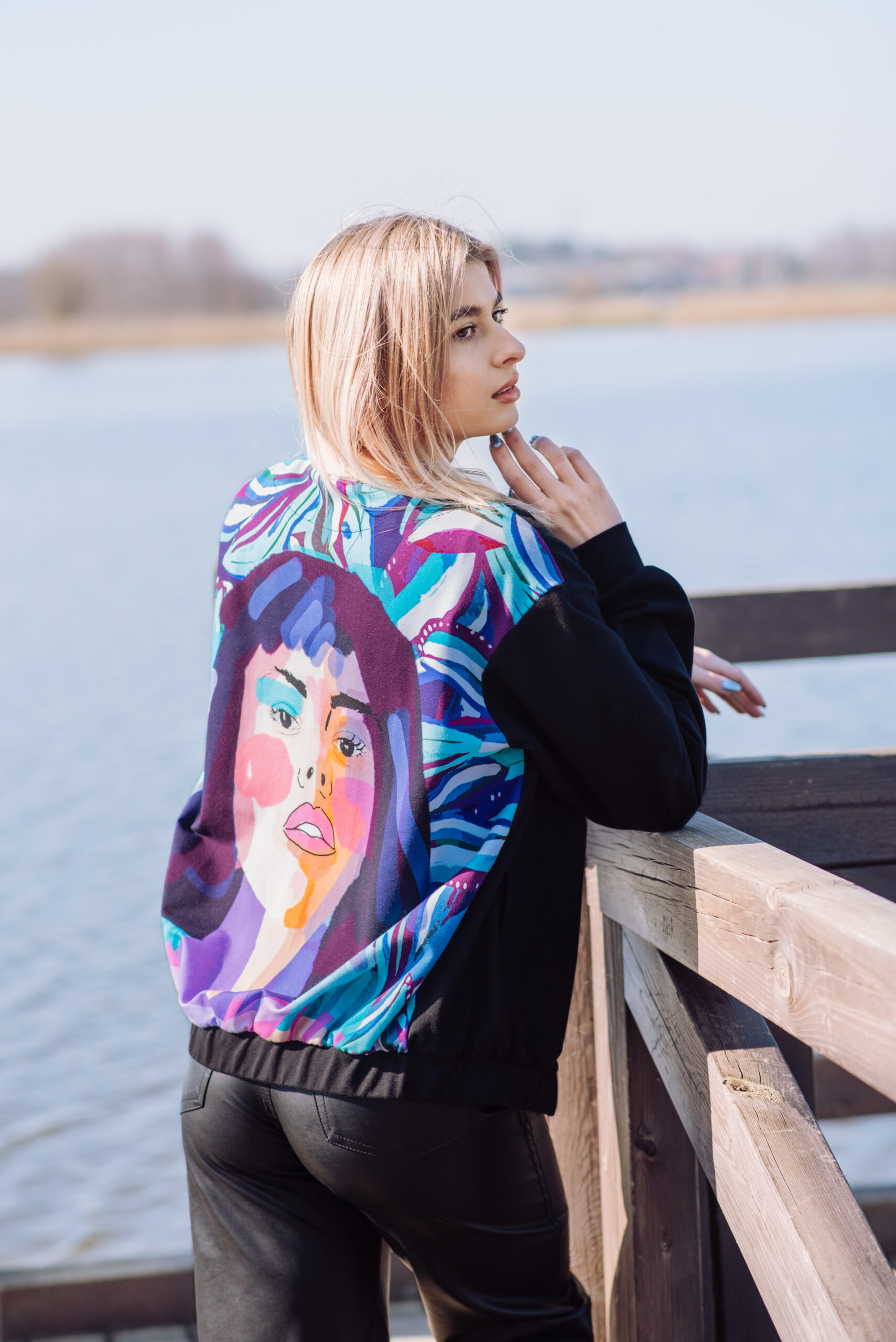 Największym atutem tej bluzy jest piękna grafika umieszczona na plecach. Twarz przedstawiona na grafice emanuje kobiecą siłą i delikatnością jednocześnie, co sprawia, że bluza jest niezwykle oryginalna i wyjątkowa. Grafika ta nadaje bluzie niepowtarzalny charakter, co z pewnością przyciągnie uwagę osób, które cenią sobie indywidualny styl.