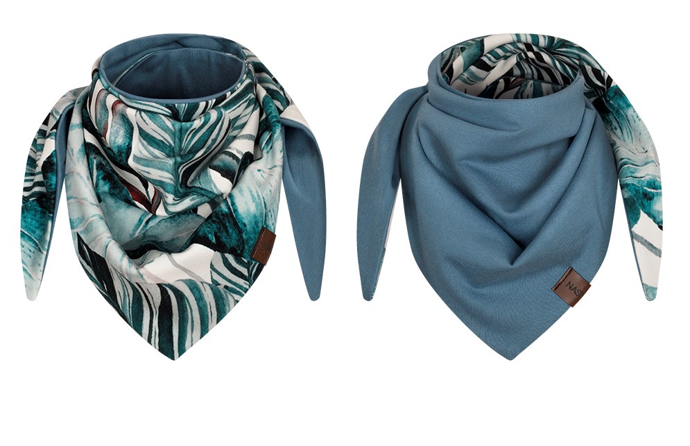 Chusteczka dziecięca dwustronna turkusowe jane liście- jeans