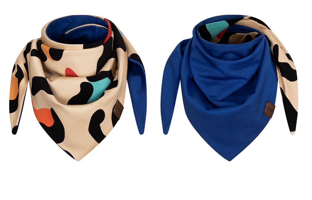 Piękna dwustronna apaszka dziecięca. Można ją nosić na dwie strony. Strona jednolitą lub w print. Dwie stylizacje za jedna cenę.