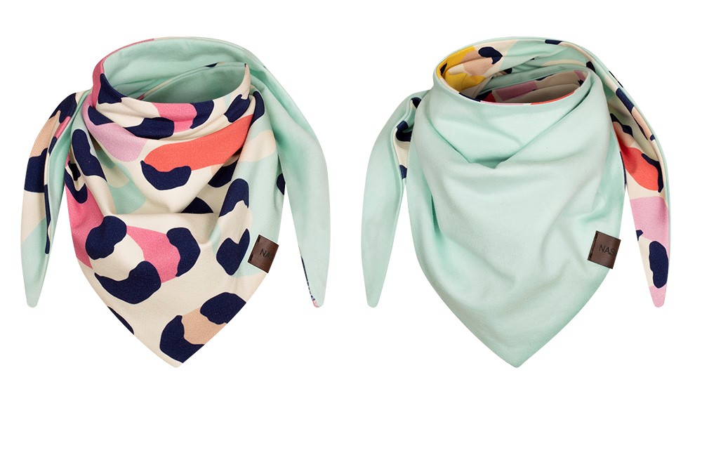 Piękna dwustronna apaszka dziecięca. Można ją nosić na dwie strony. Strona jednolitą lub w print. Dwie stylizacje za jedna cenę.