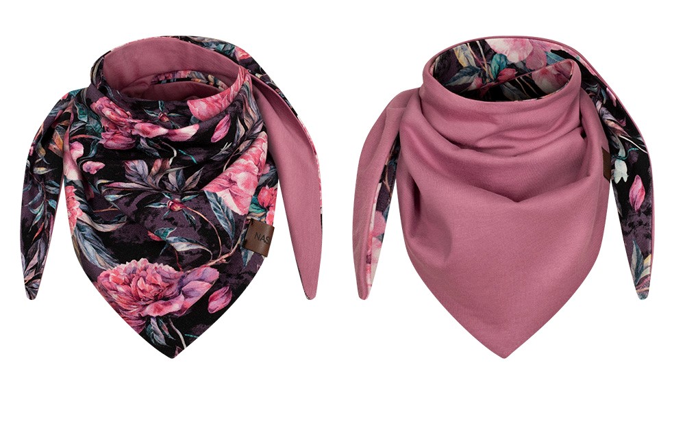 Piękna dwustronna apaszka dziecięca. Można ją nosić na dwie strony. Strona jednolitą lub w print. Dwie stylizacje za jedna cenę.