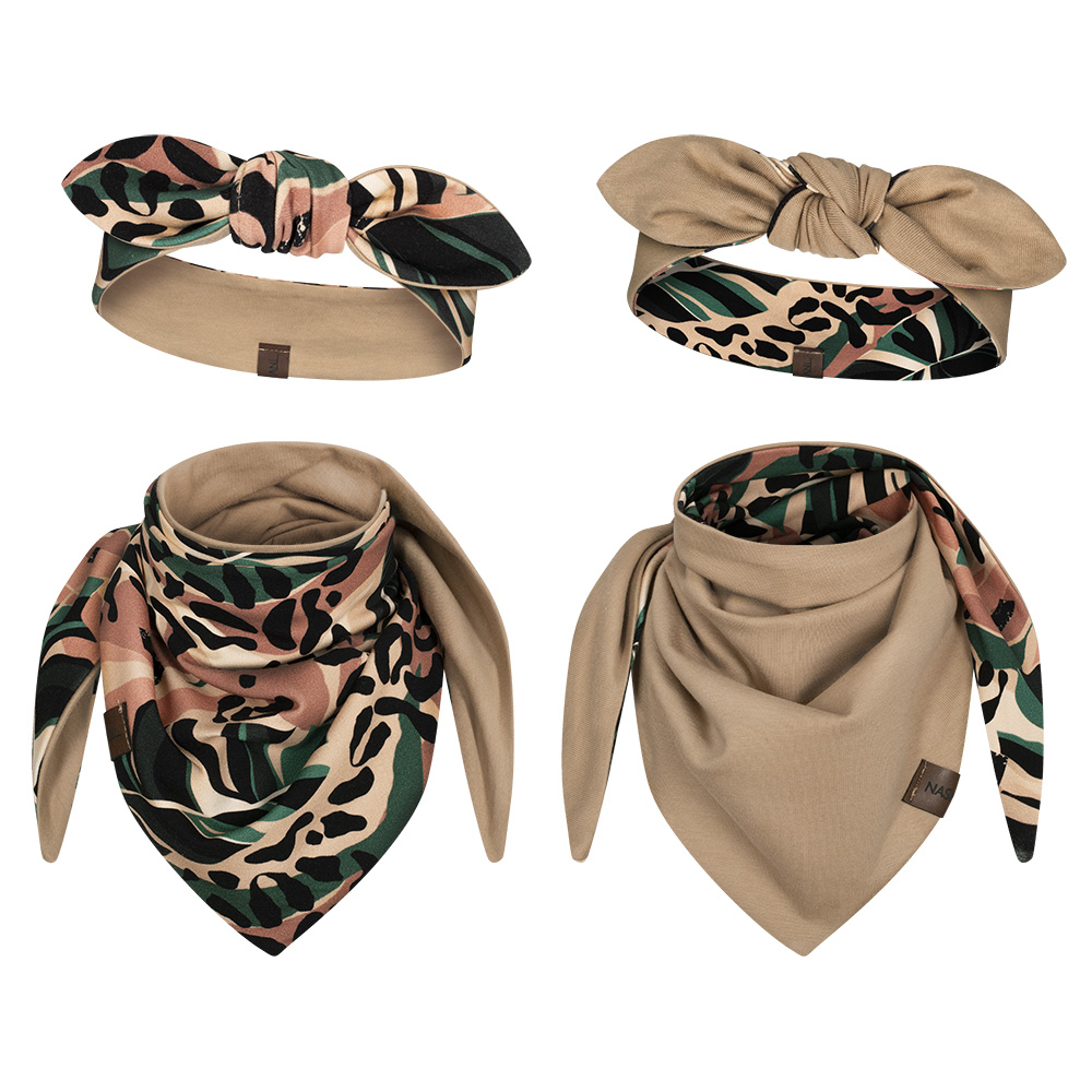komplet dwustronny dziecięcy opaska z kokardką i apaszka, Brazykia-beż