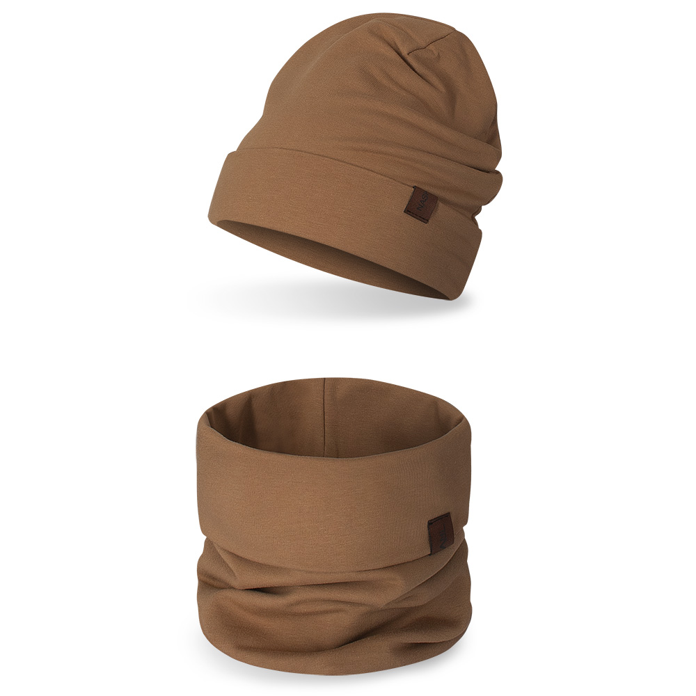 Komplet dziecięcy czapka+ komin, koniak