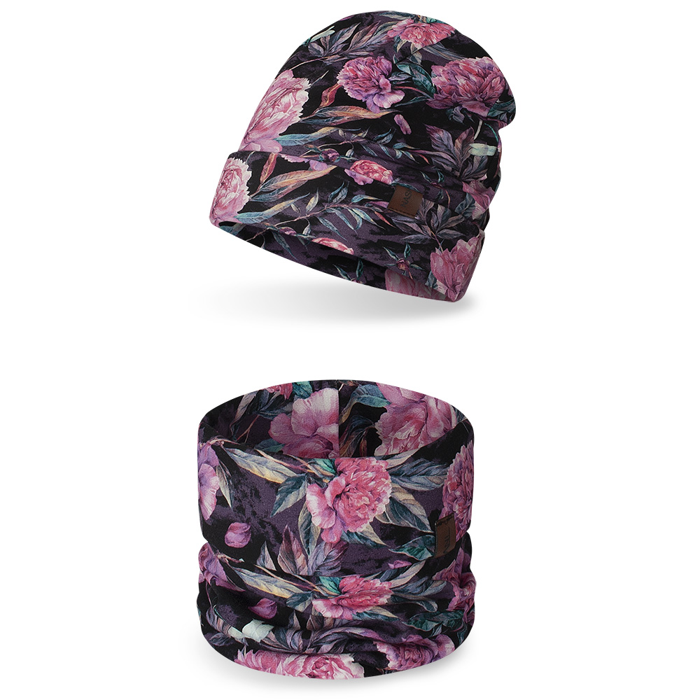 Komplet dziecięcy czapka+ komin, różowe kwiaty