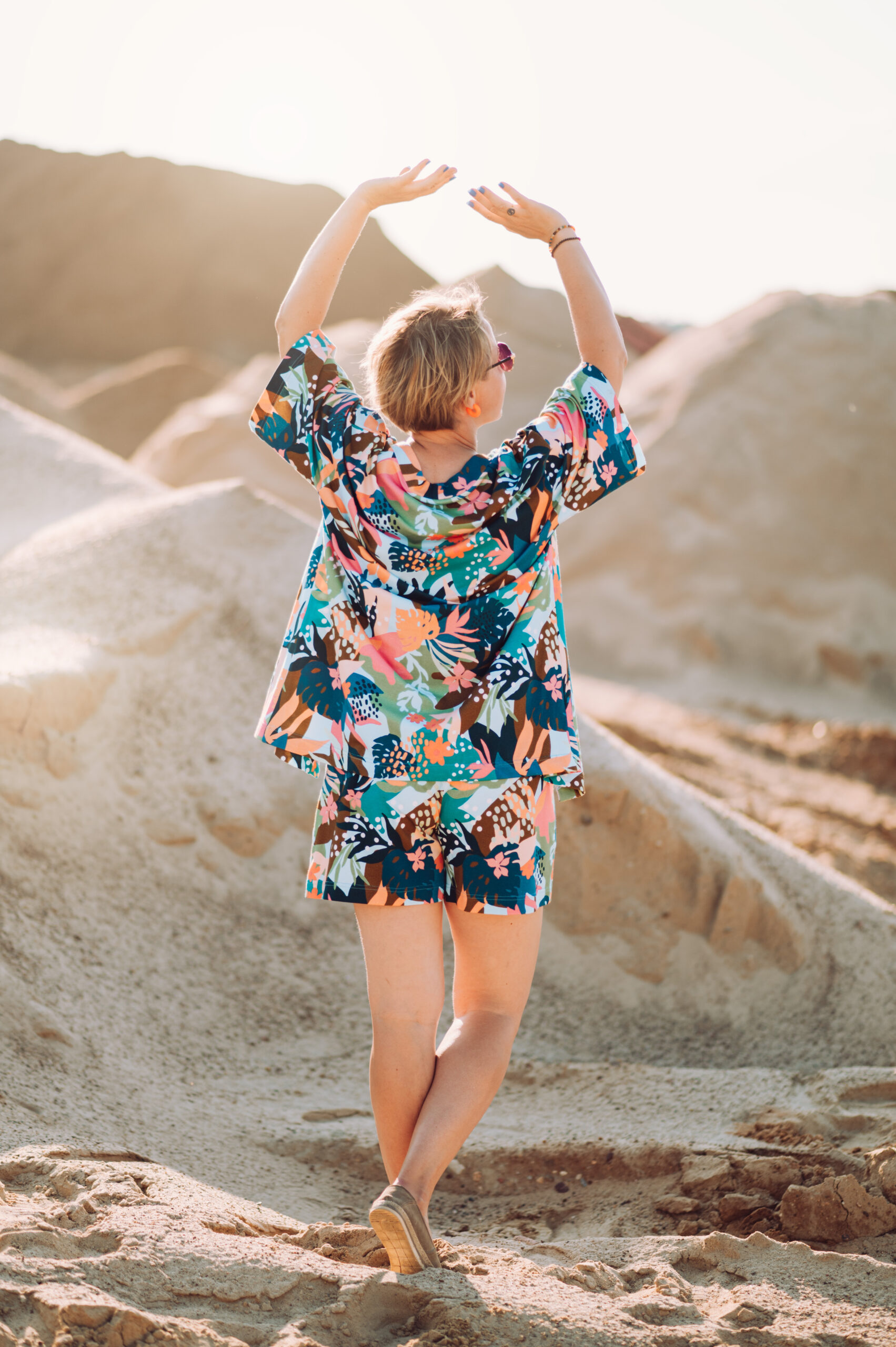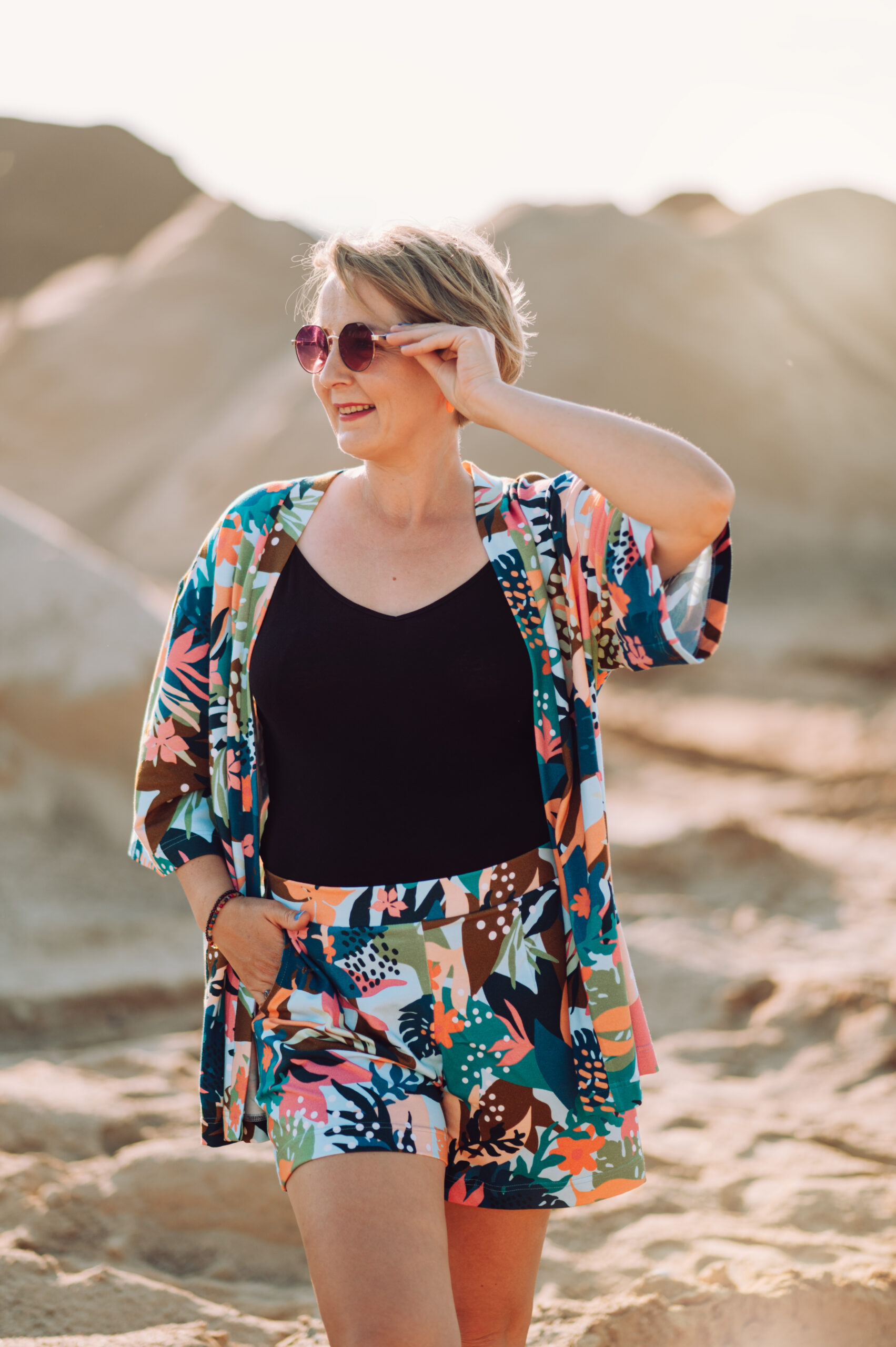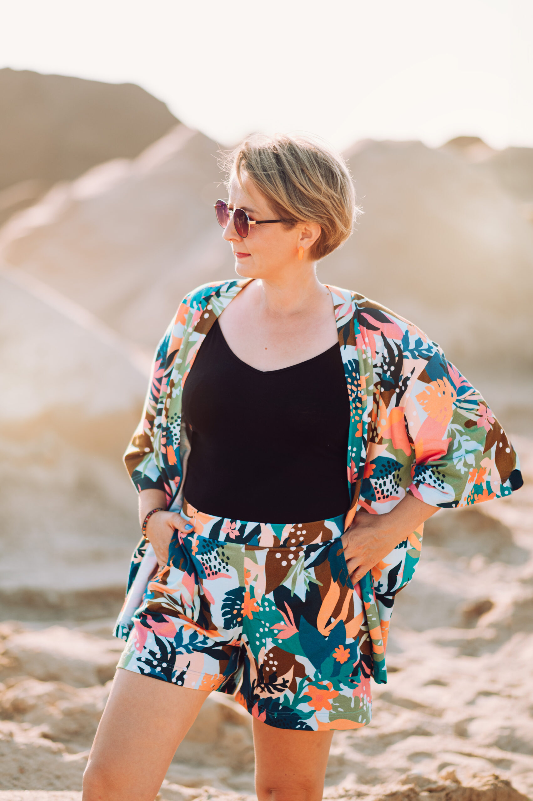 Na nadchodzące lato polecamy zestaw składający się z luźnych wygodnych szortów oraz lekkiej narzutki. Takie połączenie będzie idealne na ciepłe dni. Szorty sprawią, że będziesz czuć się wygodnie i swobodnie.  Dodając do tego narzutkę, stworzysz kompletny look, który sprawdzi się na chłodniejsze wieczory oraz podczas letnich wypadów na wieś czy piknik.Materiał z którego są uszte to bawełna, która jest lekka, przewiewna i przyjazna dla skóry.