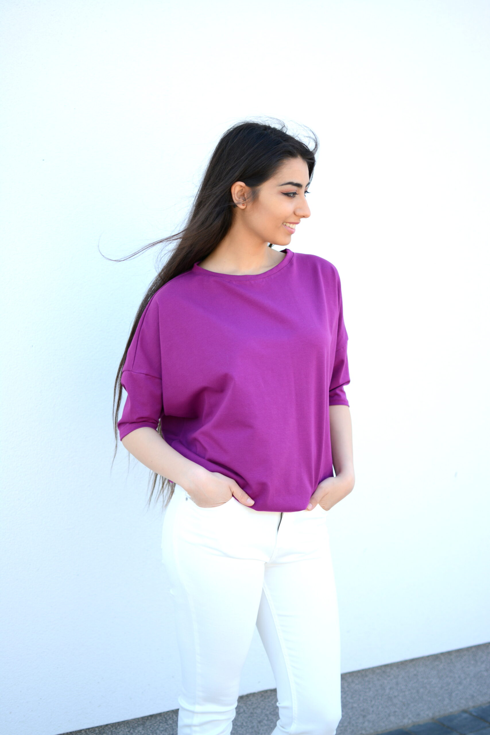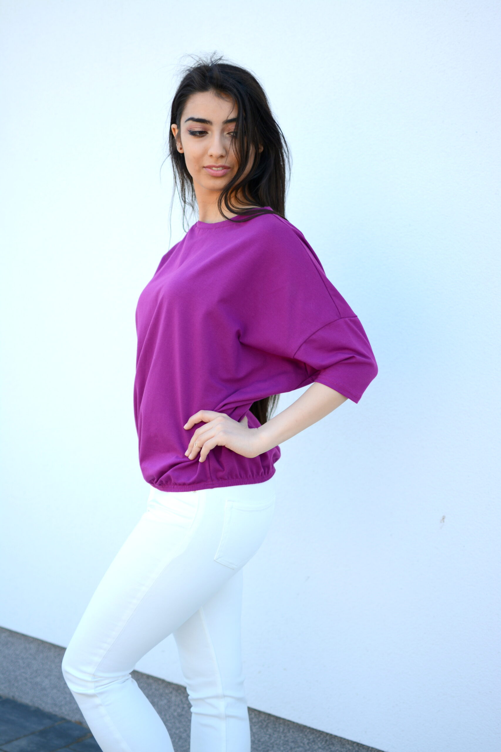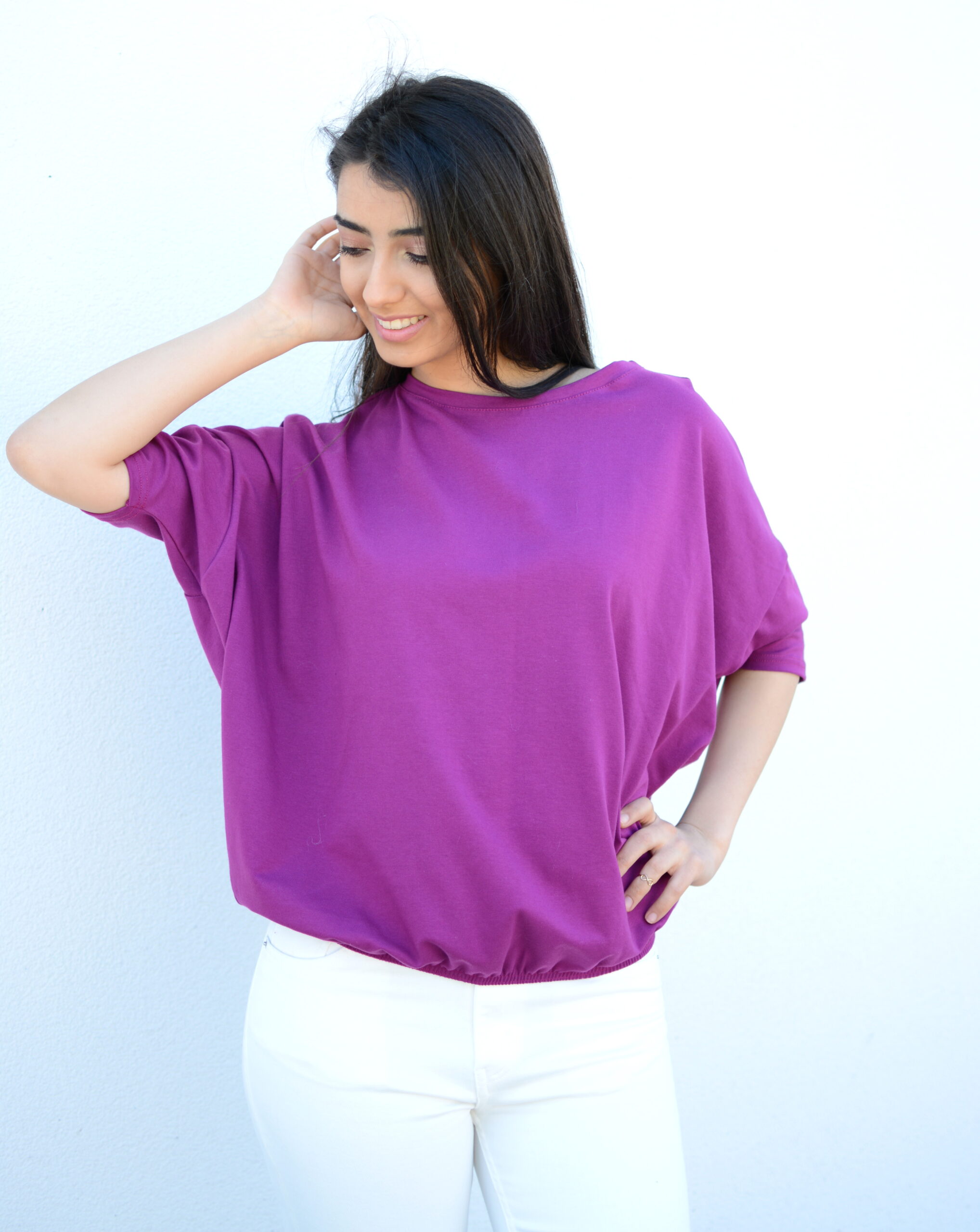 szeroka luźna bluzka nietoperz oversize fioletowa