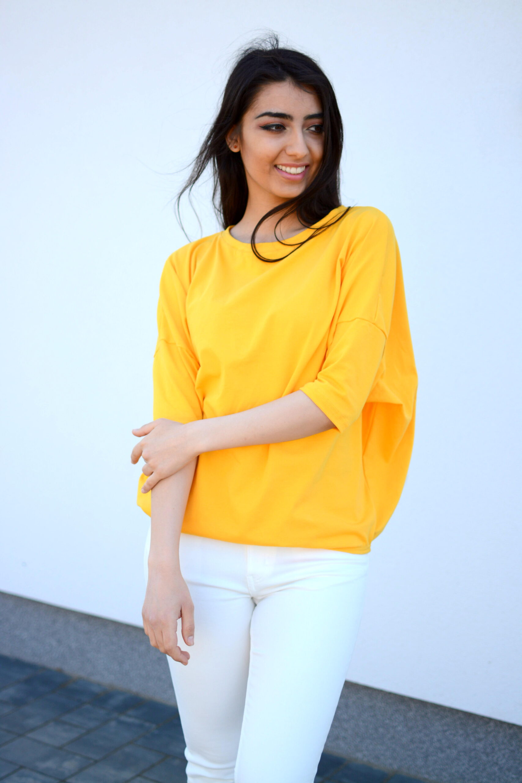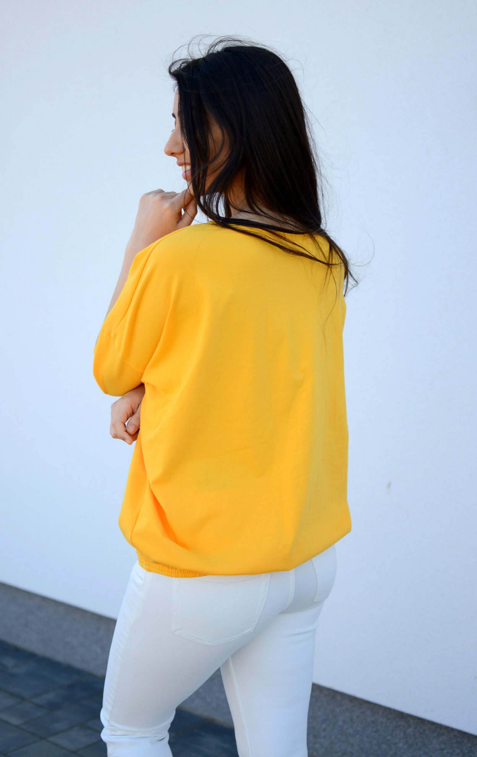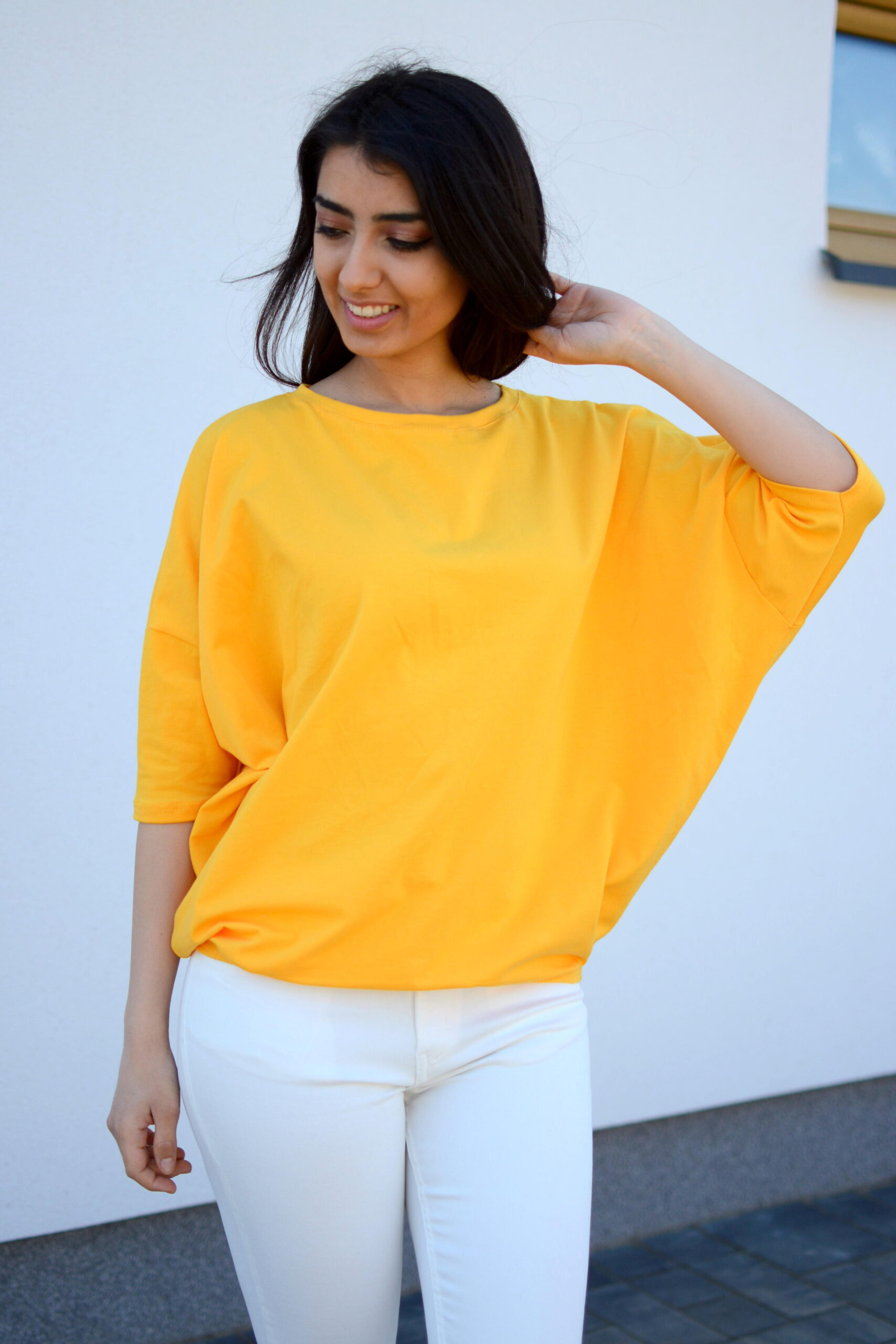 szeroka luźna bluzka nietoperz oversize żółta