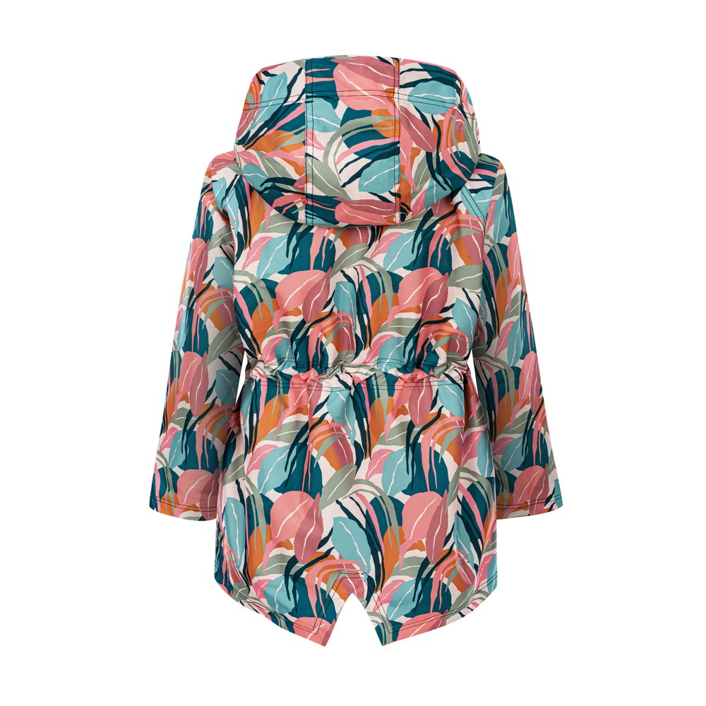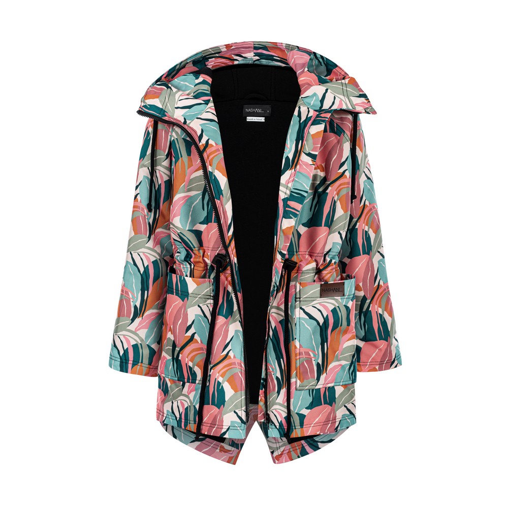 Kurtka- parka z kapturem i dużymi kieszeniami. W pasie wszyty tunel który można ściągnąć dla lepszego ocieplenia. Płaszcz ocieplony, zastosowana podszewka to dzianina dresowa drapana w stu procentach bawełniana, oddychająca. Przepiękny print przykuwający uwagę.