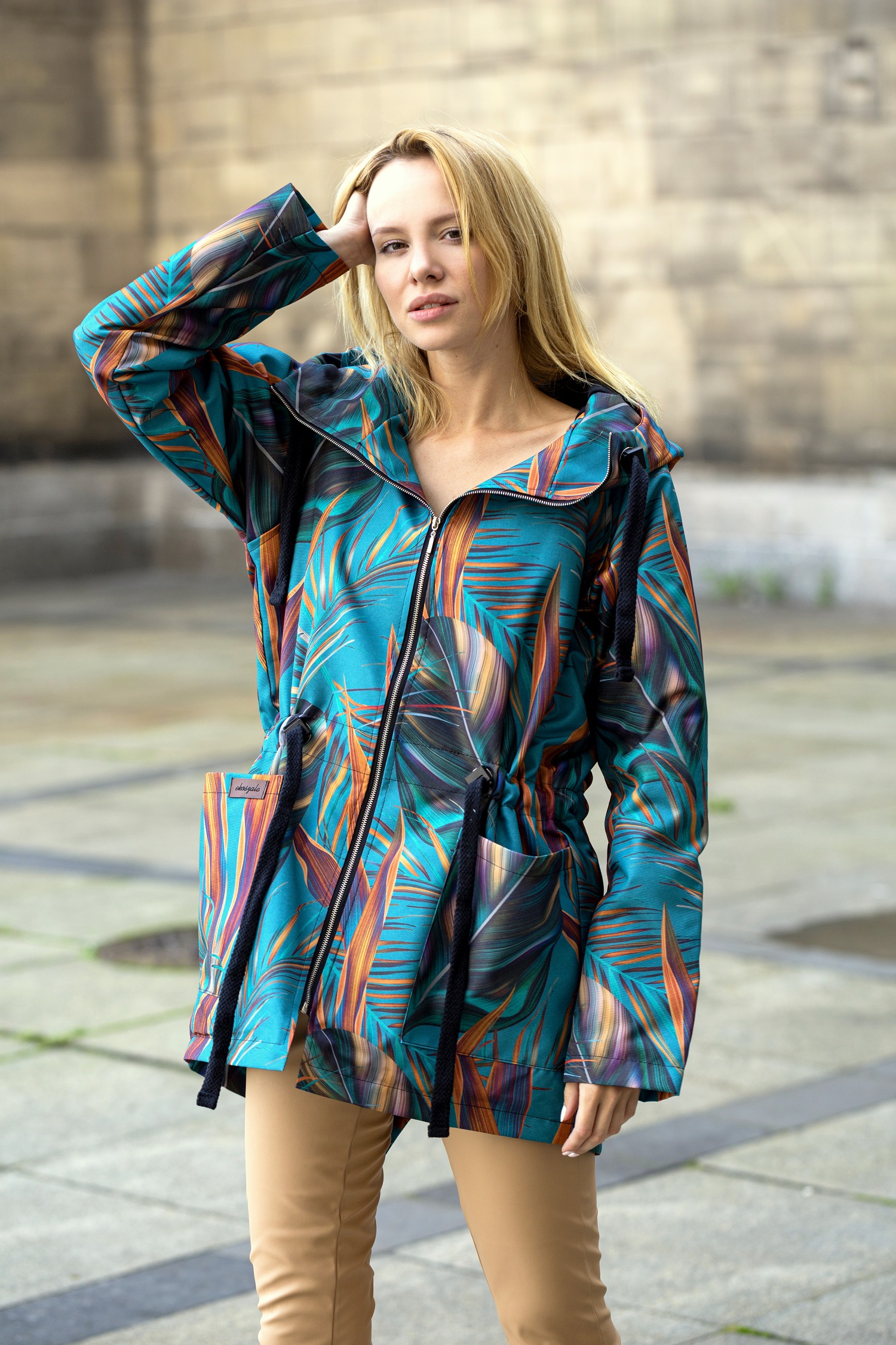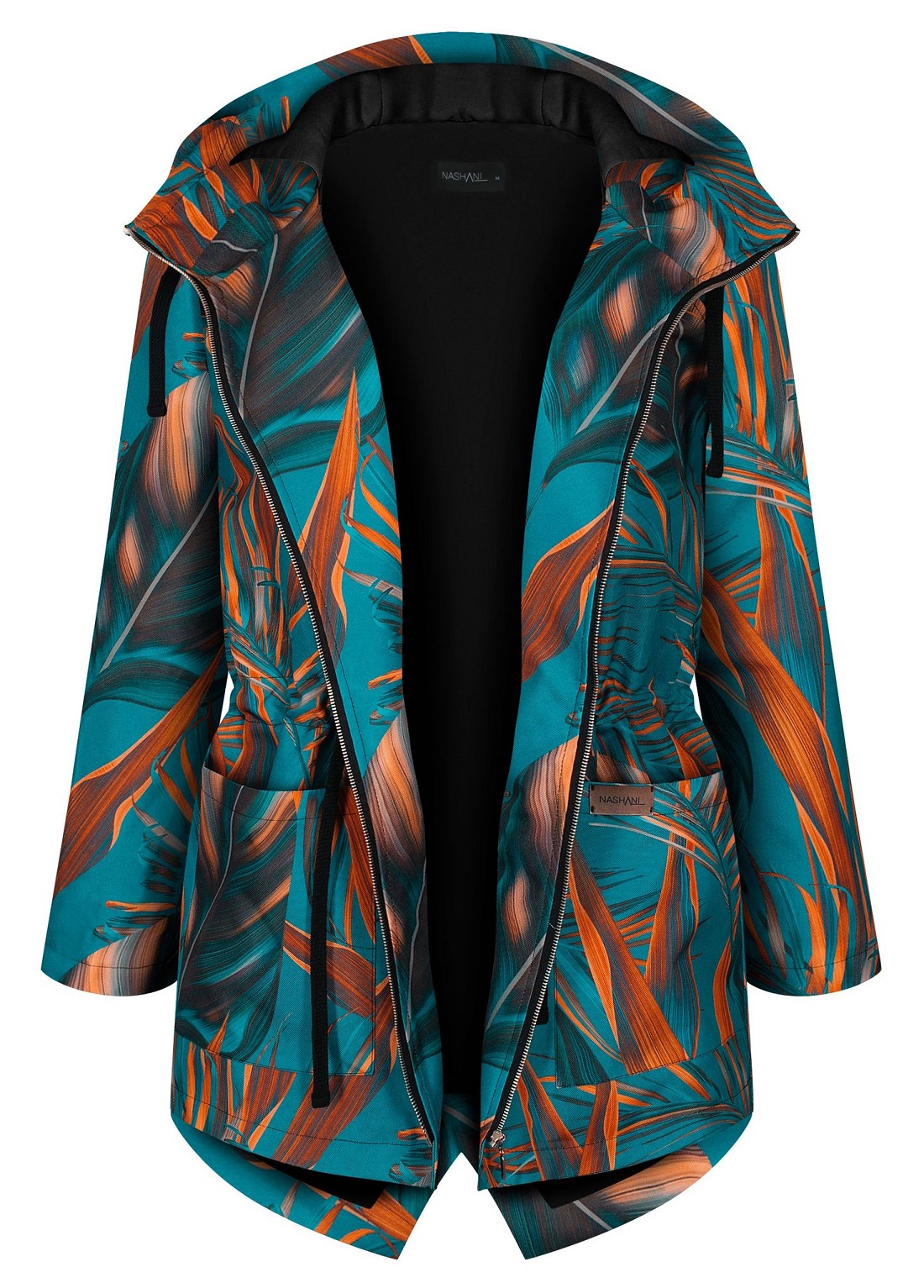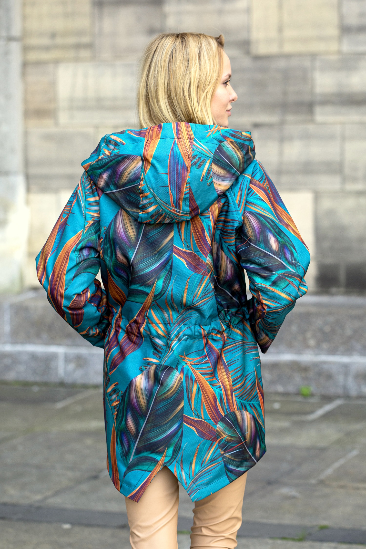 Kurtka ciepła z tunelem, turkusowe, ciemne liście