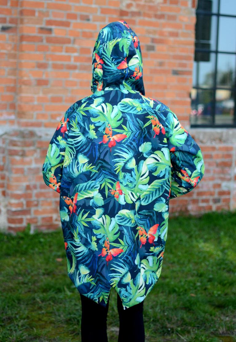 Ten kolorowy płaszcz przeciwdeszczowy to must-have na sezon przejściowy! Duży kaptur i oversize’owy krój sprawia, że jest nie tylko funkcjonalny, ale też mega modny. Ma dwie wielkie kieszenie i super print.