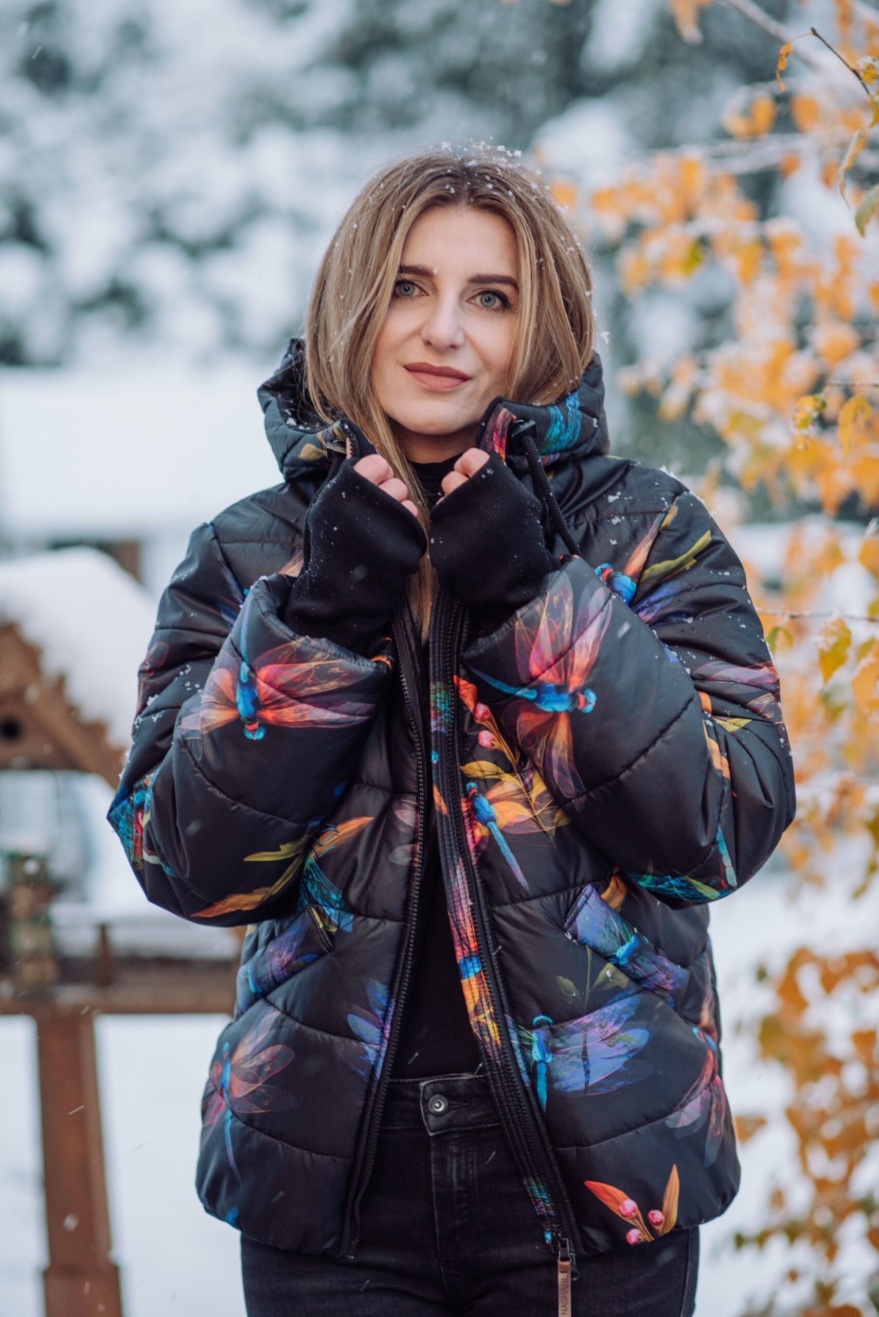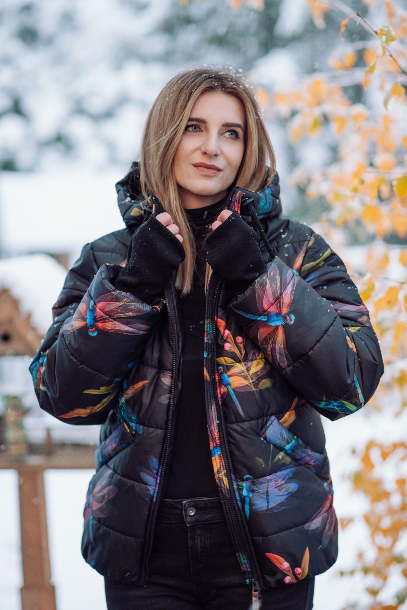 Zimowa kurtka pikowana. Pasy co 10 cm. Bardzo ciepła. Wypełnienie ocieplina silikonowa plus 2 x wigofil co zapobiega przemakaniu.Długie ściągacze z otworem na palec mogą spokojnie zastąpić rękawice.