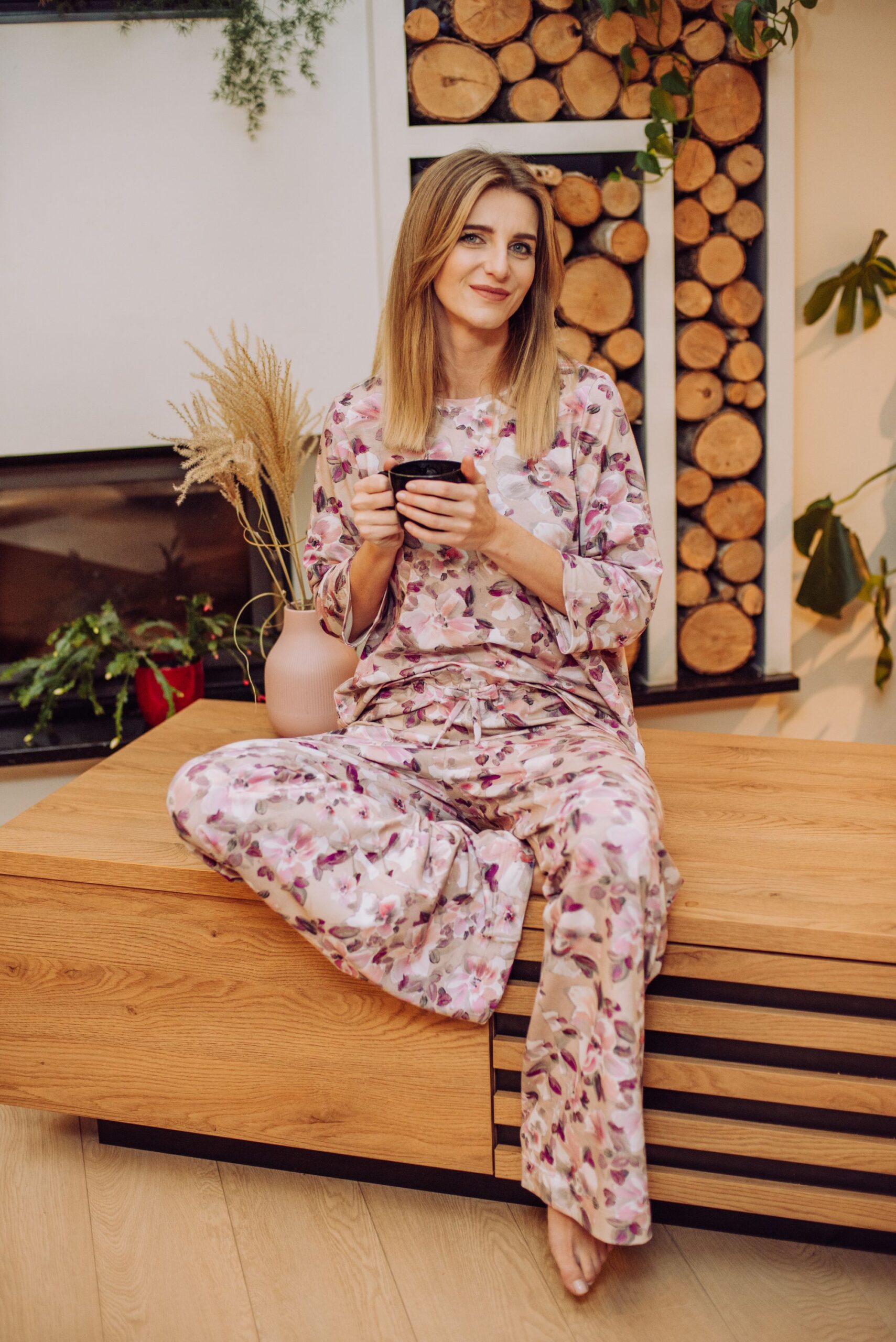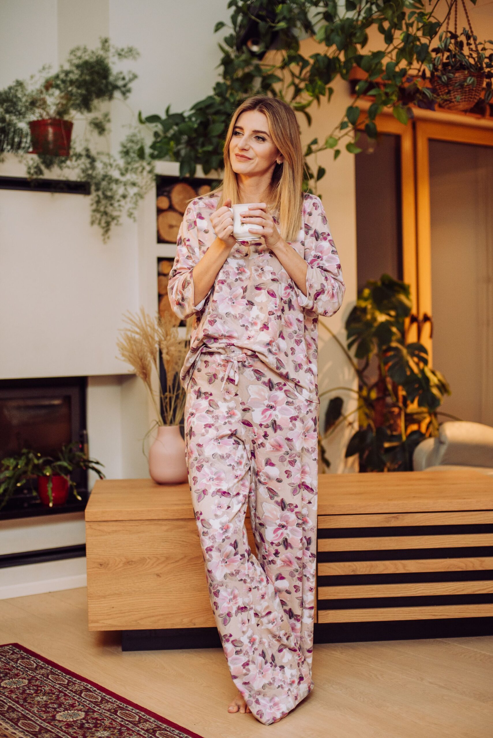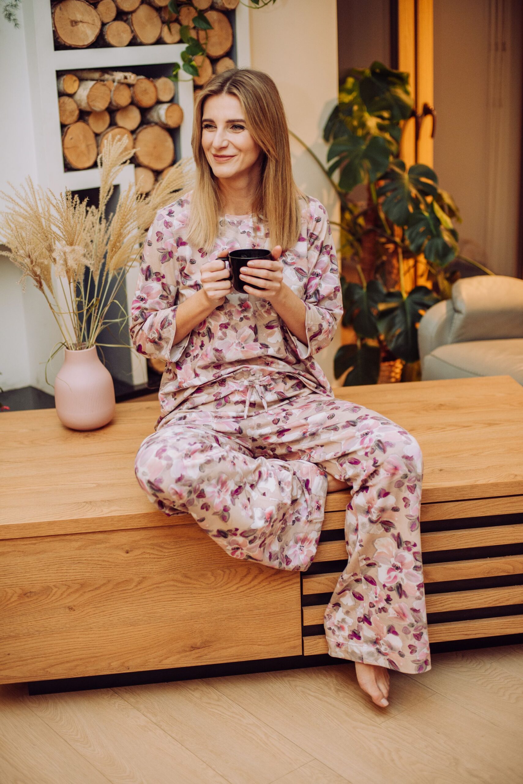 Lekka,delikatna piżama z najwyższej jakości bawełny. Komfort spania zapewniony. Uszyta z największą starannością . Rękaw 3/4, nogawki luźne szerokie. Gumka w pasie , ściągana dodatkowo sznurkiem.