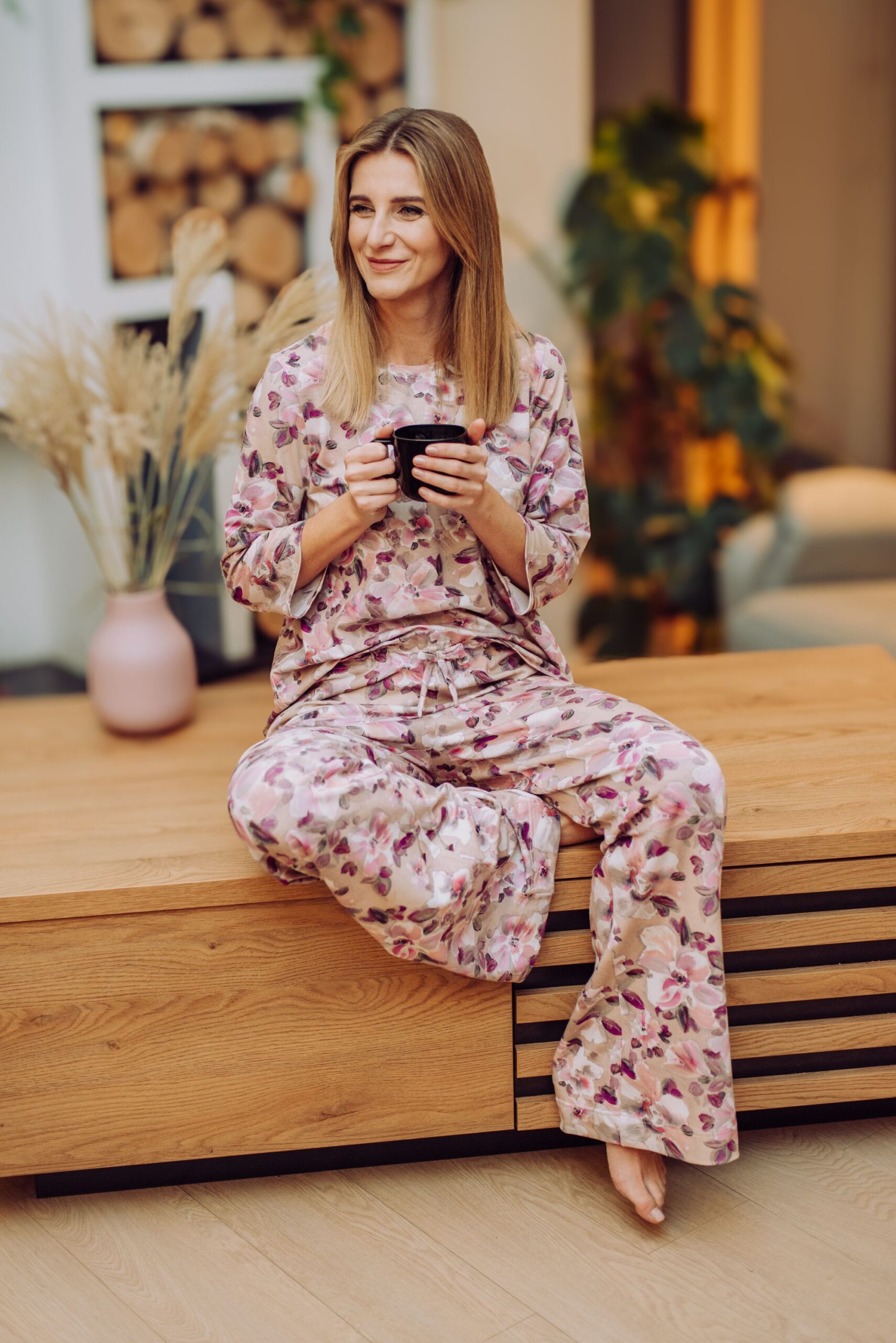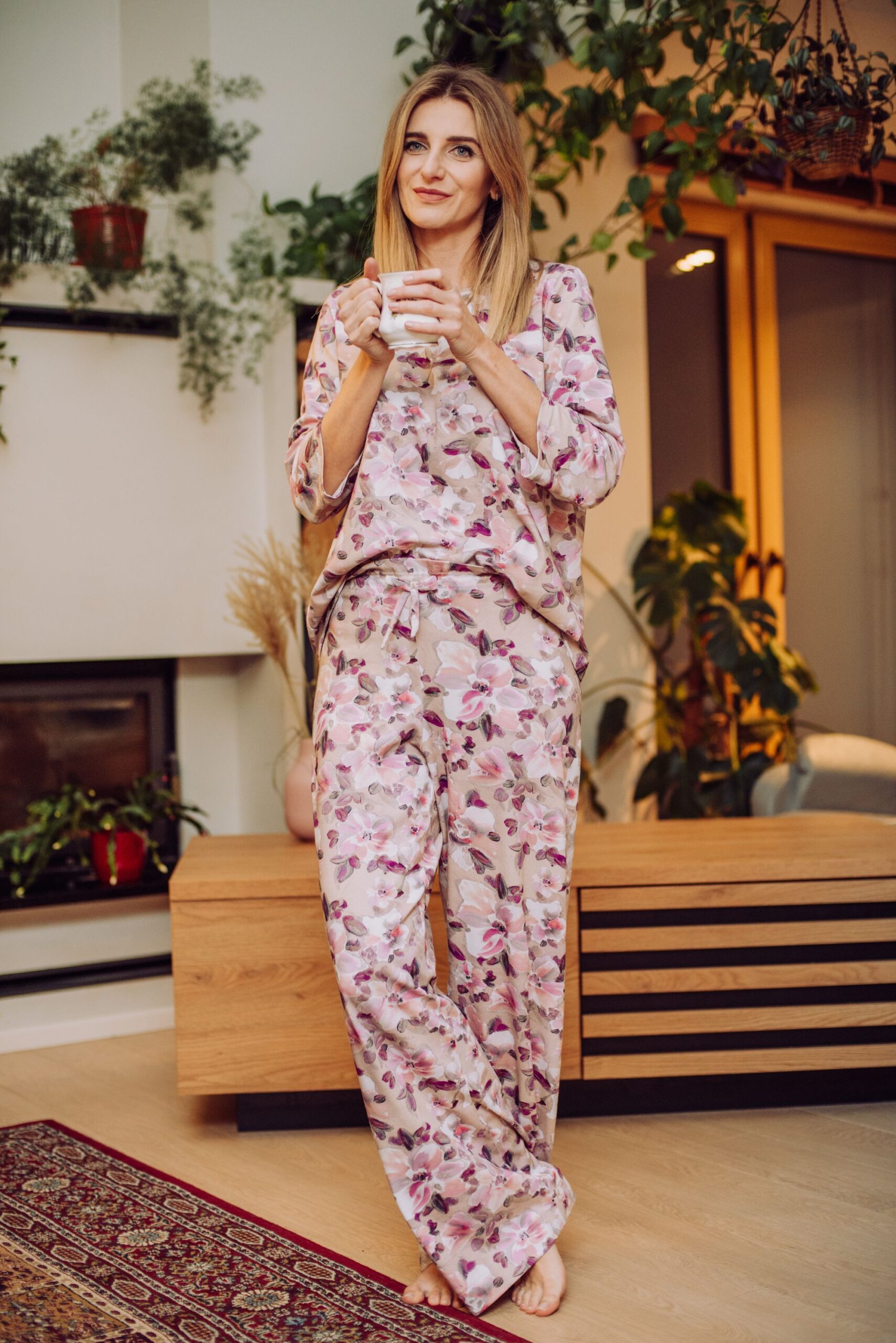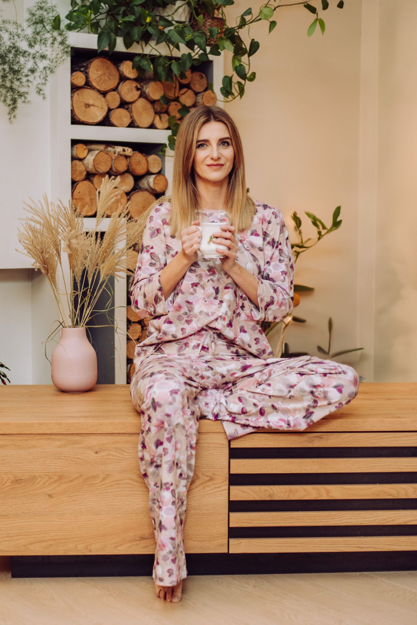 Lekka,delikatna piżama z najwyższej jakości bawełny. Komfort spania zapewniony. Uszyta z największą starannością . Rękaw 3/4, nogawki luźne szerokie. Gumka w pasie , ściągana dodatkowo sznurkiem.