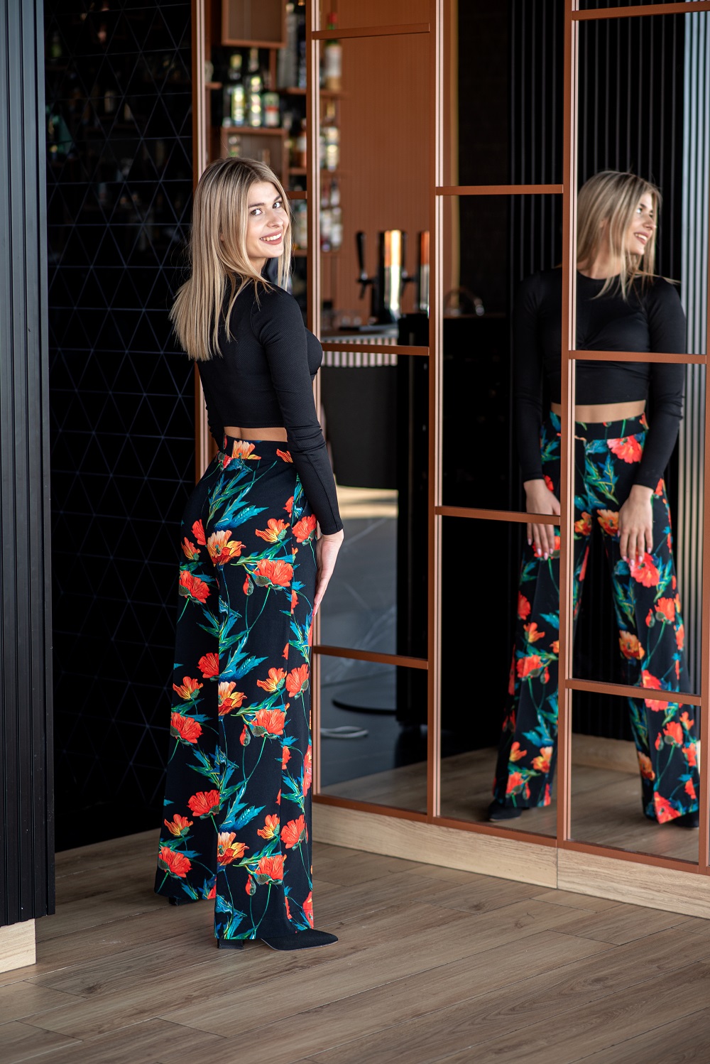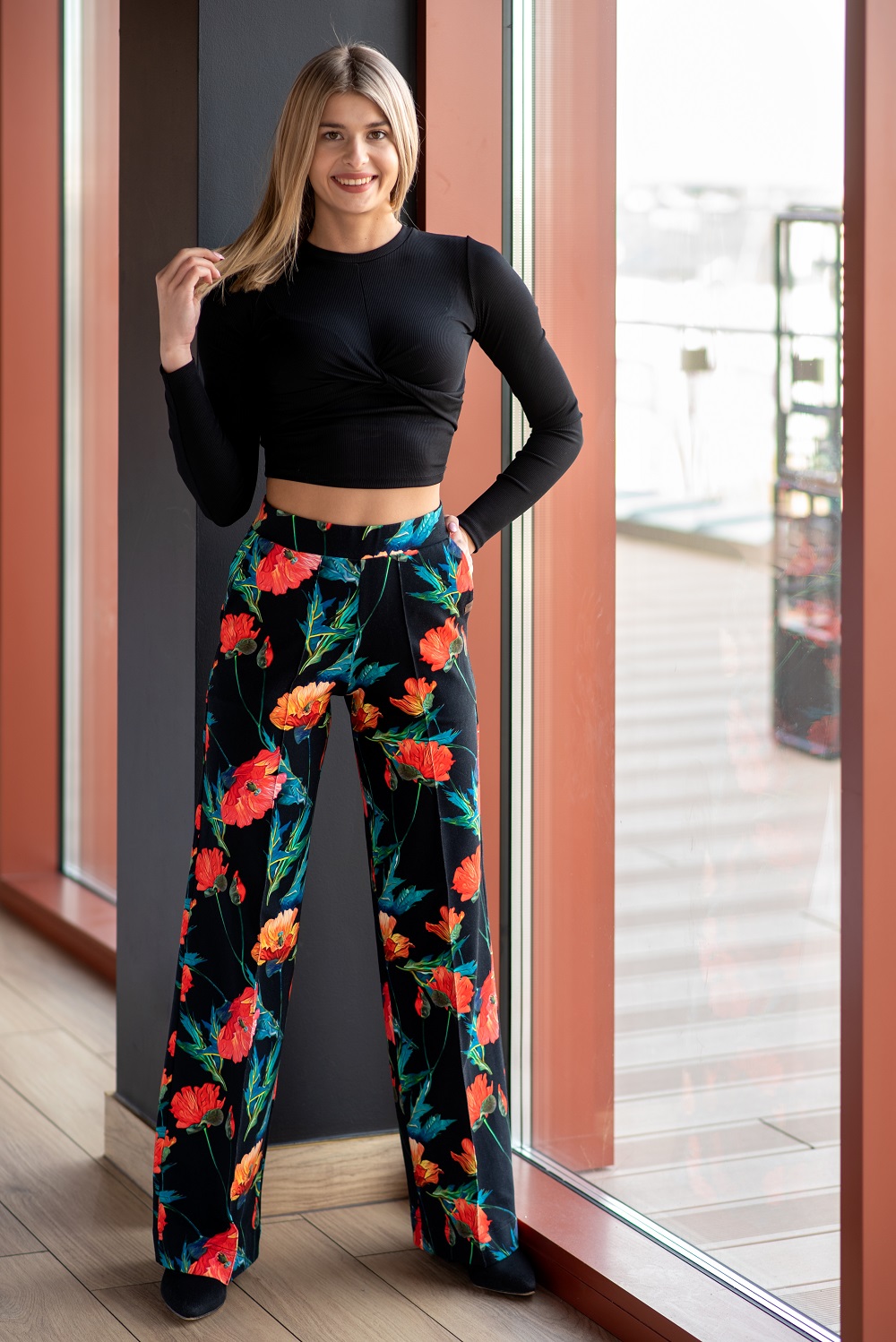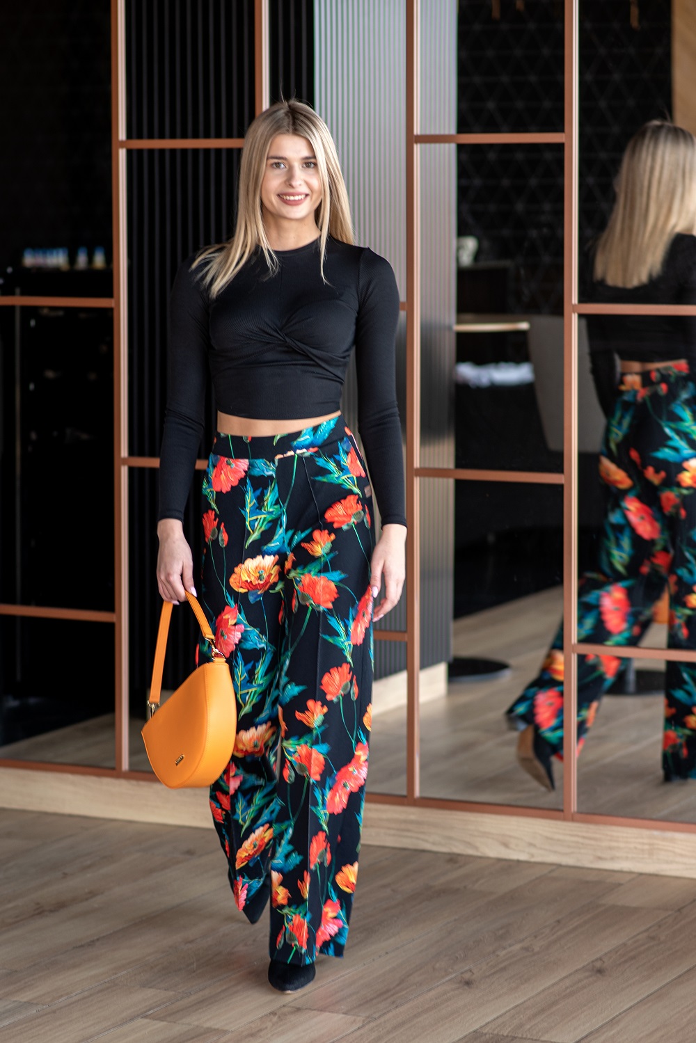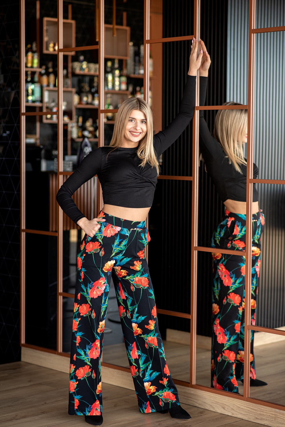 Piękne spodnie o szerokich nogawkach to hit tego sezonu. Fason, kolor lub print  na pewno wyróżni cię z tłumu. Spodnie świetnie prezentują się na nogach.  Prosty fason doskonale sprawdzi się zarówno do eleganckich jak i codziennych  stylizacji.